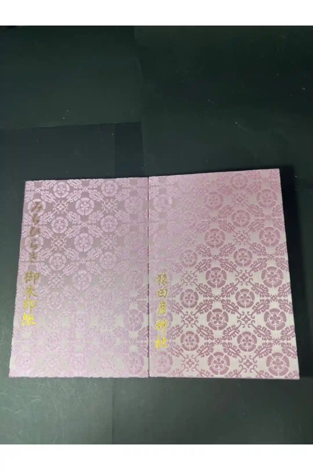 表面に「みちひらき 御朱印帳」、裏面に「猿田彦神社」の文字が金色で表記されています。