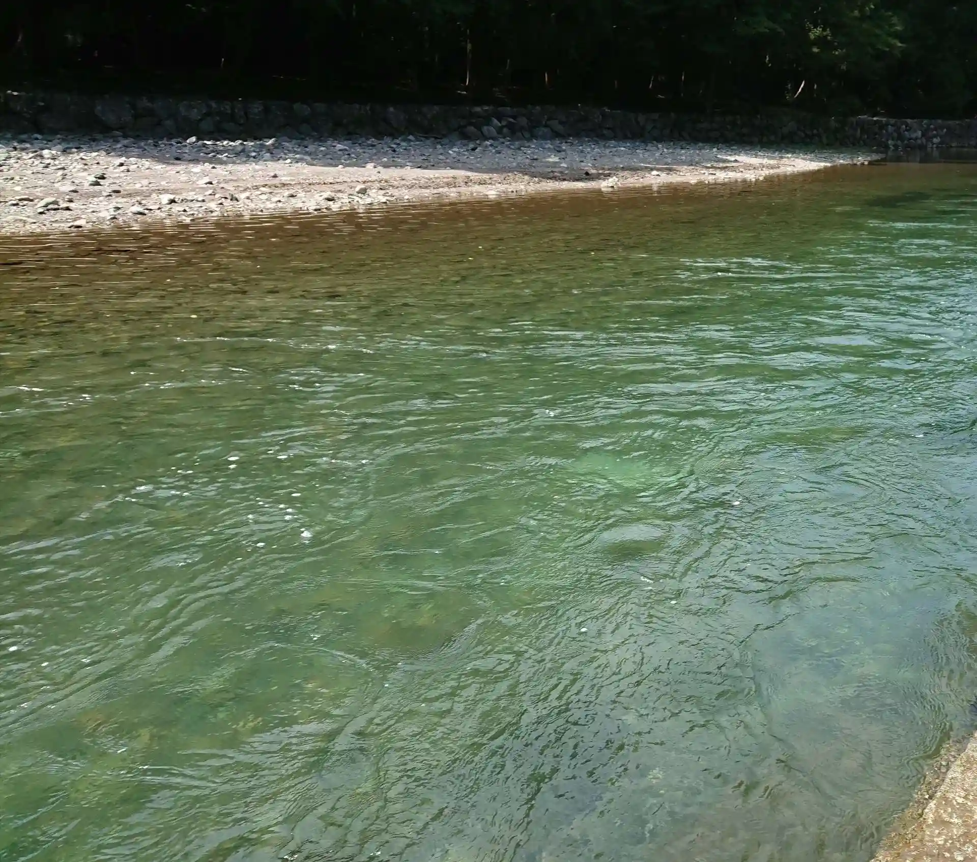 遊泳禁止なのに、川下で水遊びしてました。