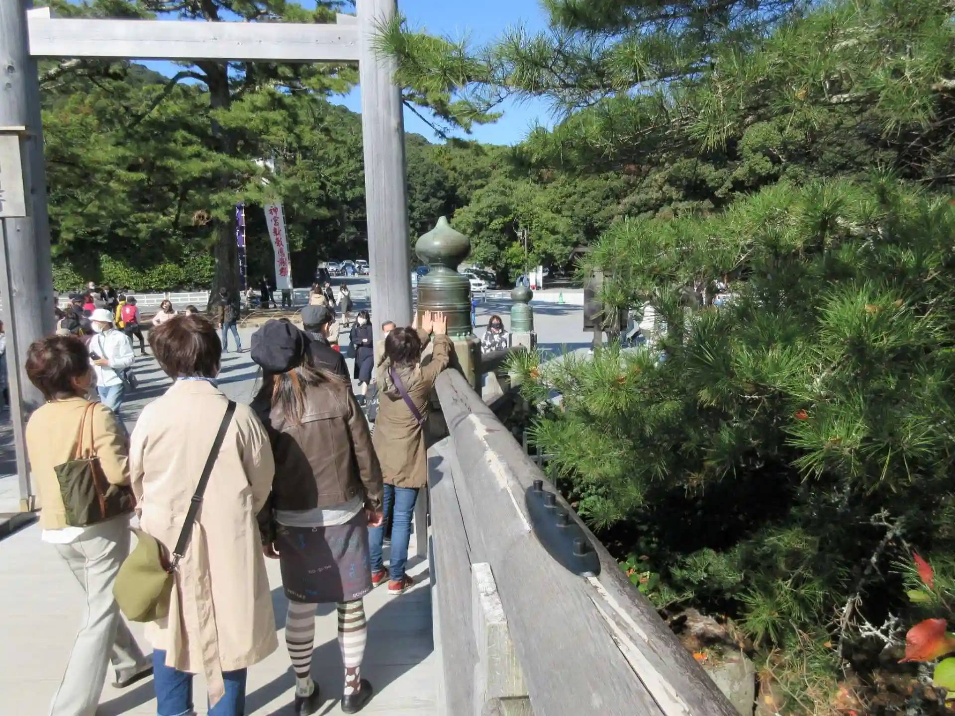 手水に行くと五十鈴川が静かに出迎えてくれました。境内は比較的ゆっくり回れました。…帰りがけに団体客が押し寄せて来ました。かち合わなくて良かったと思いました。