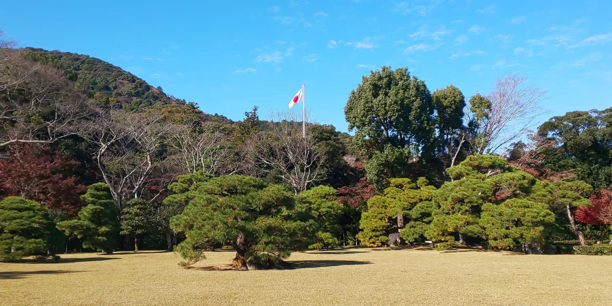 庭園の先には日の丸がなびいていました