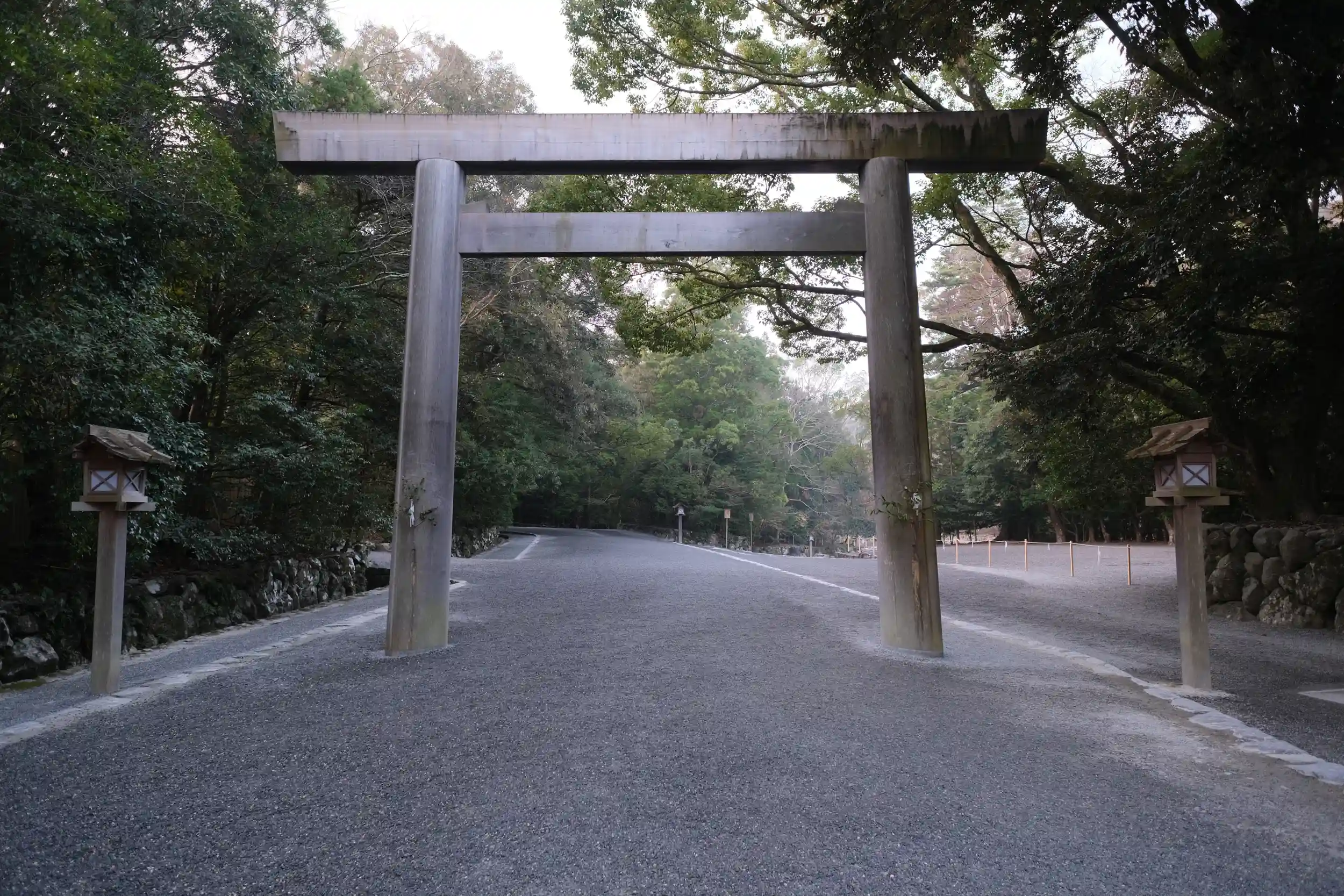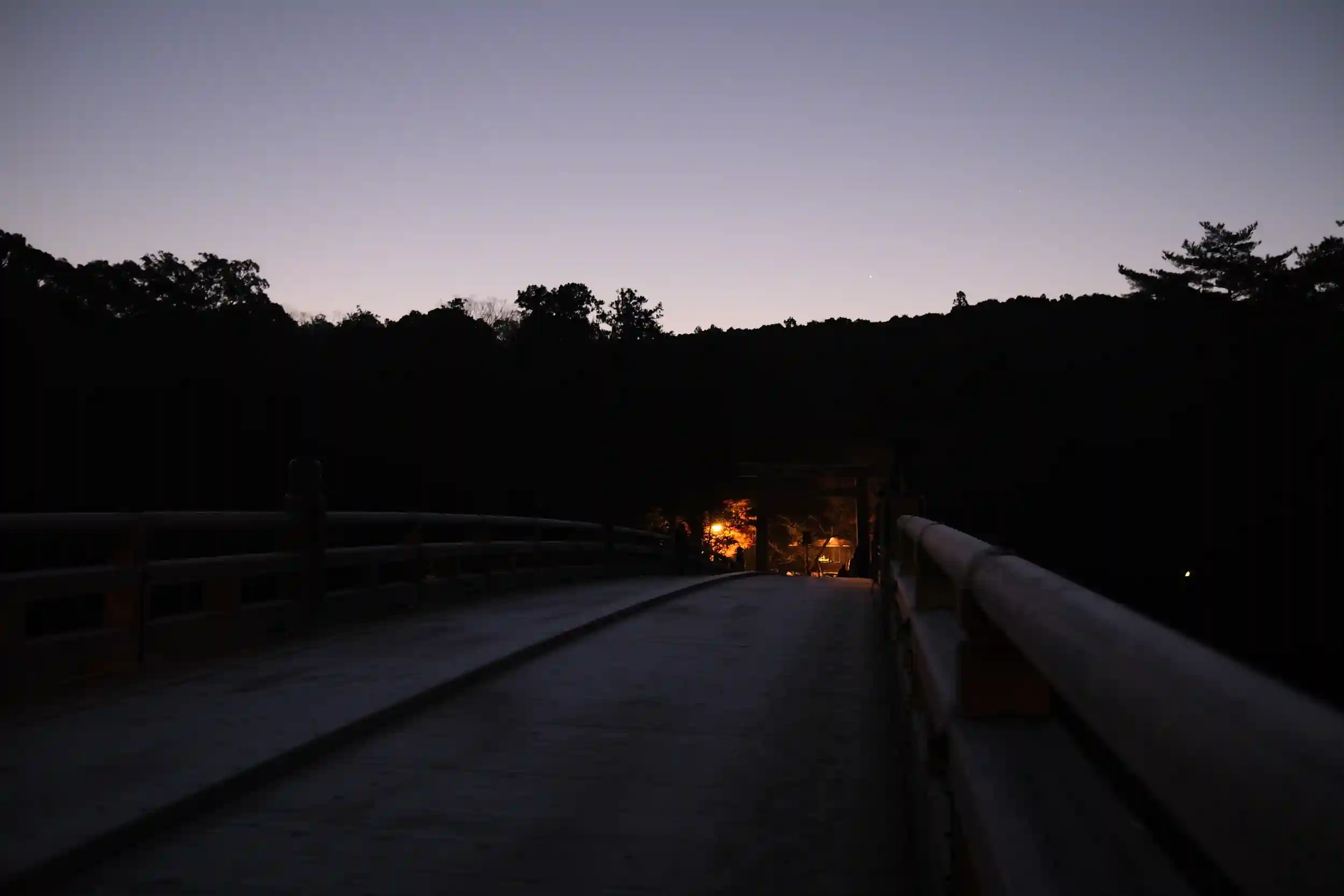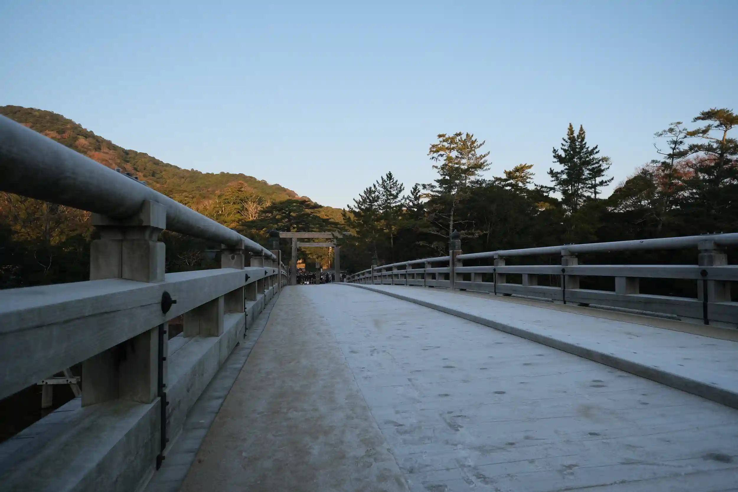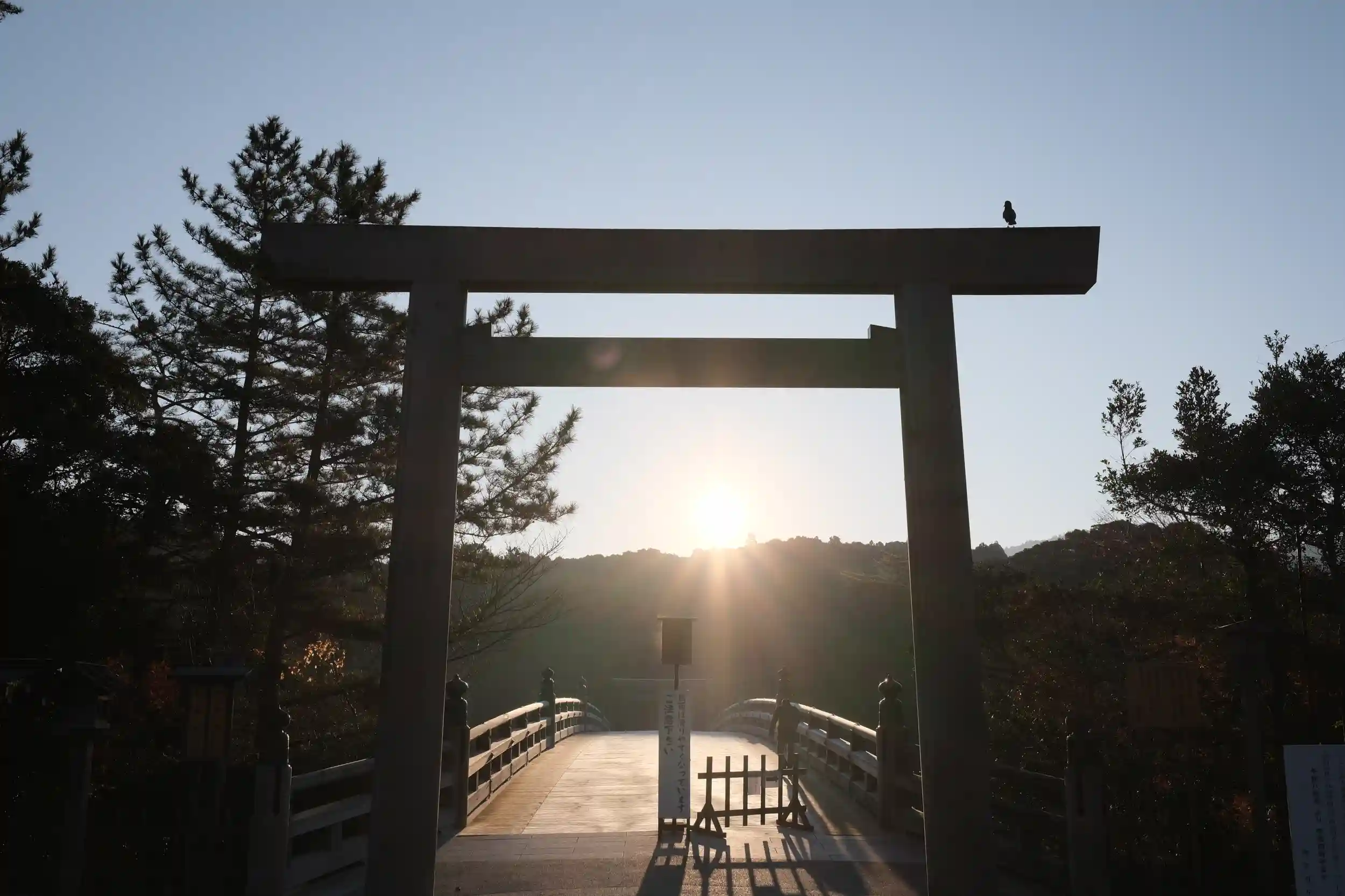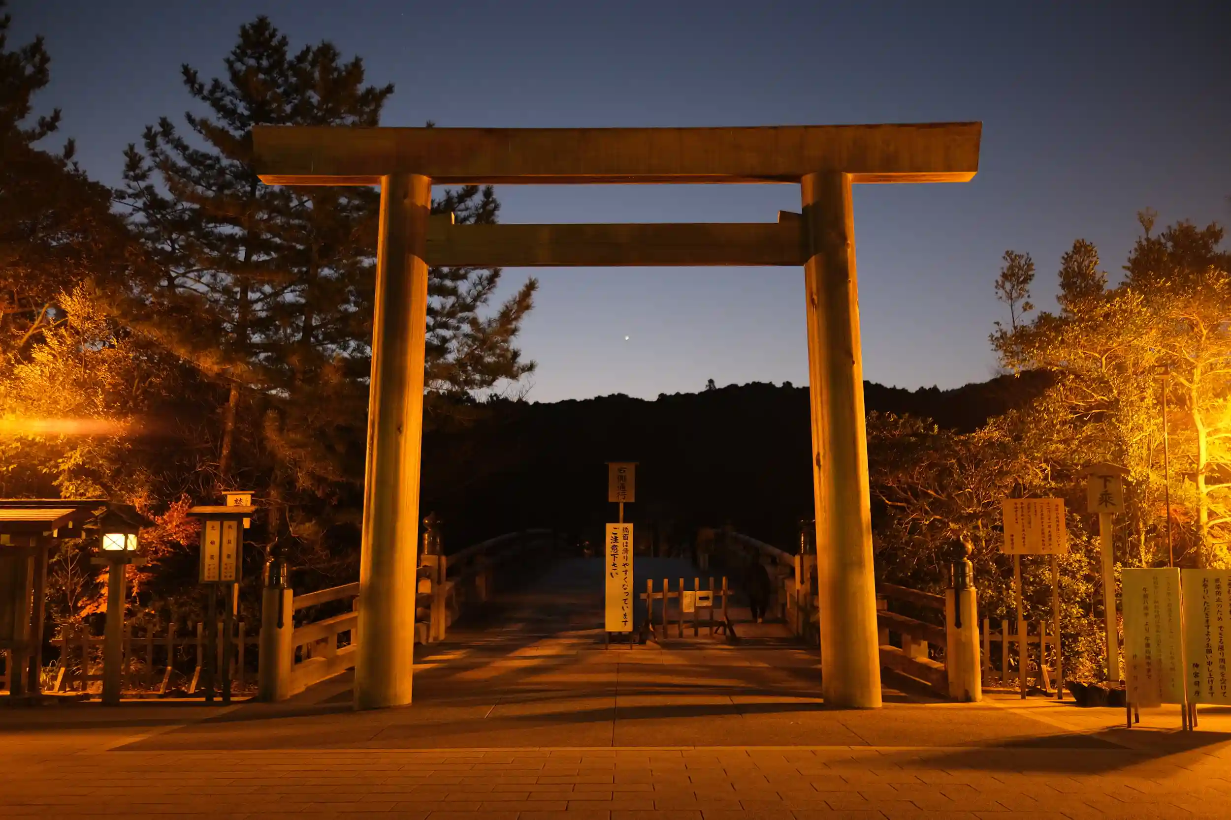暁の宇治橋を見て皇大神宮で夜明けを迎えました。