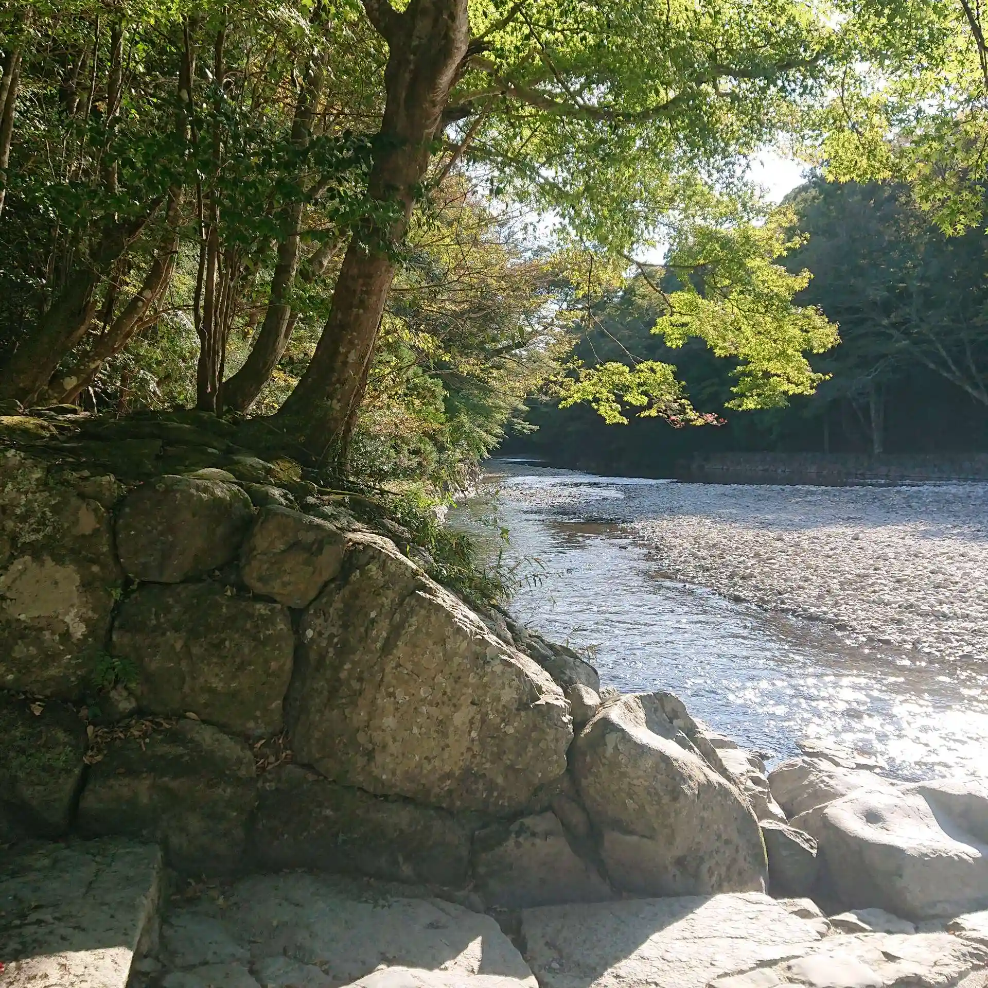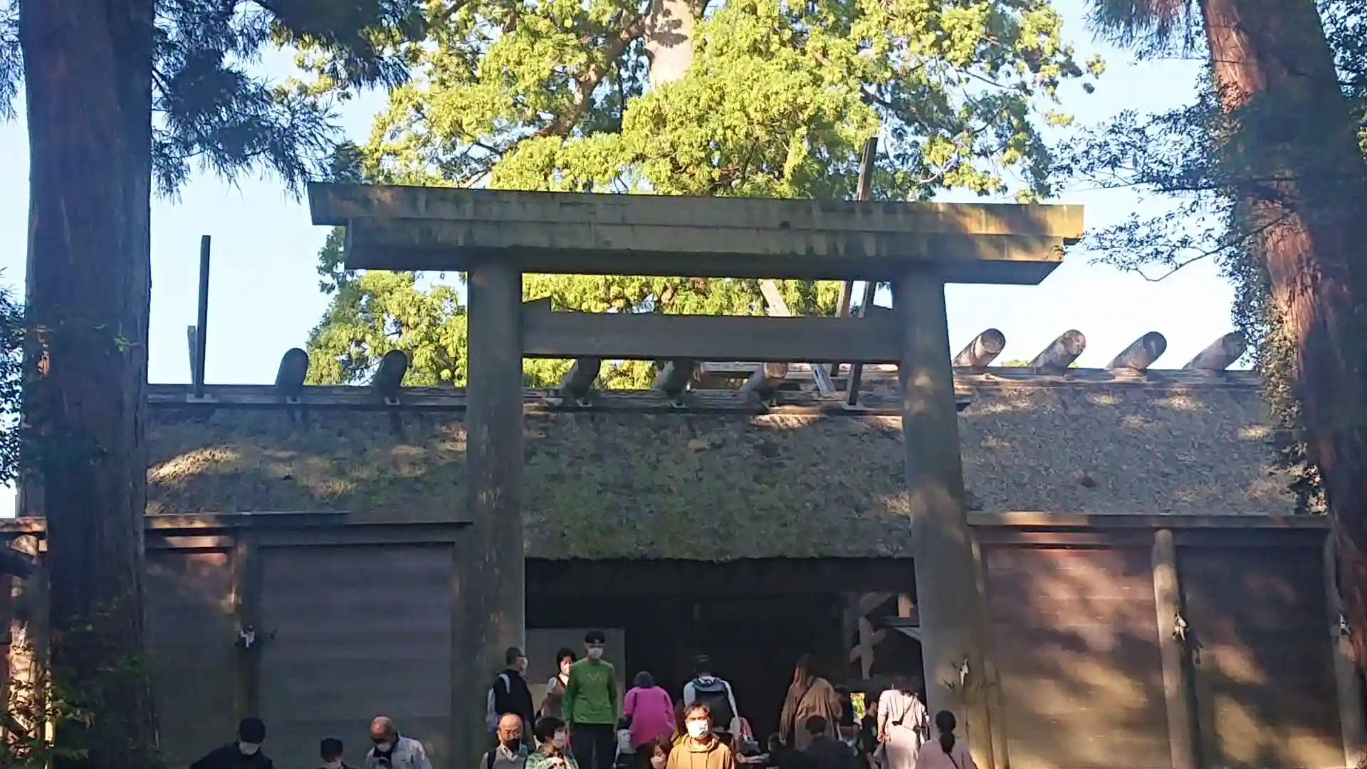 外宮に続いておかげ横丁をブラブラしつつ内宮の皇大神宮へ伺いました。日常の世界と神域を隔てる五十鈴川にかかる宇治橋を渡ると身が引き締まるような思いがしました。五十鈴川の流れはとても清廉で魚も泳いでいました。境内には多数の社が点在していて、本殿は質素ながらも茅葺き屋根で悠久の時の流れを感じさせてくれるものでした。凛と張り詰めた空気はまさに神様がおわすかのようでした。一生に一度はお伊勢参りと言わず再度伺いたい場所でした。