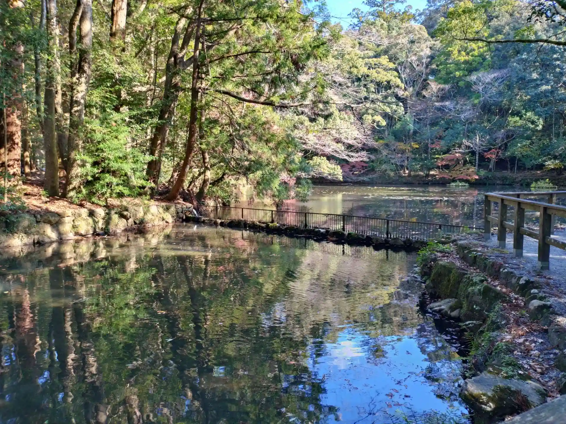 宇治橋を渡り、五十鈴川の御手洗場(みたらし)で手と口を清めて正宮へ。