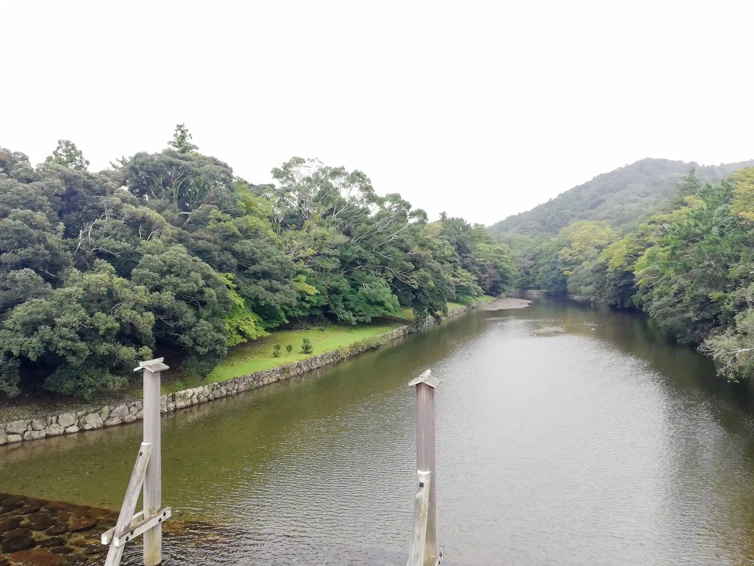 宇治橋から見た五十鈴川。ここから内宮の神域になります。背筋が伸びます。