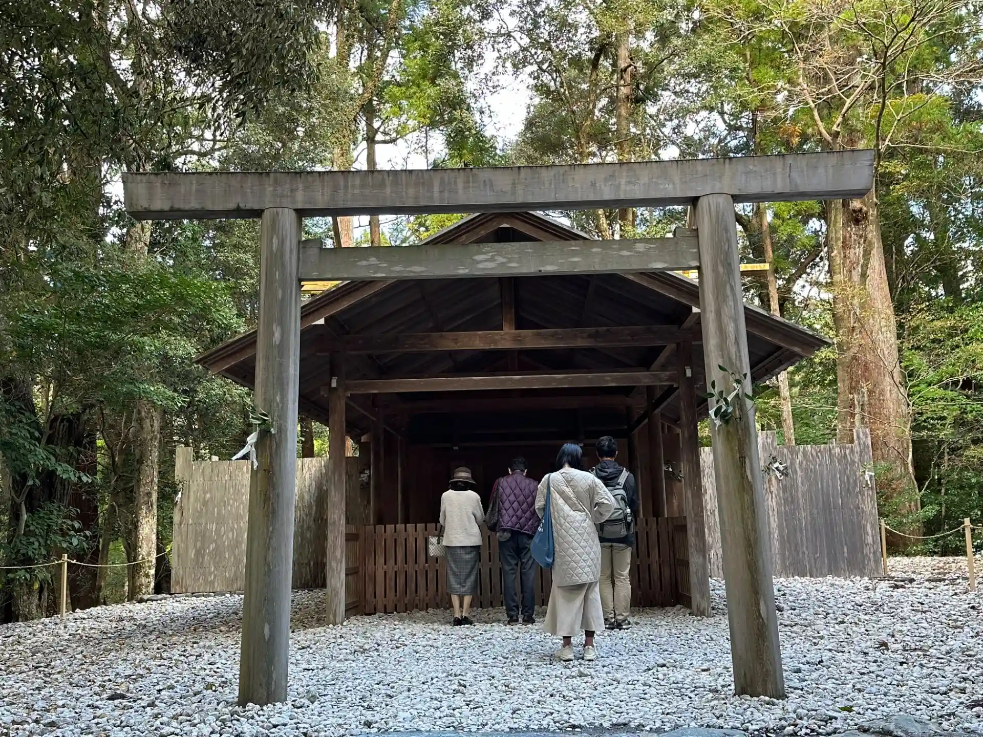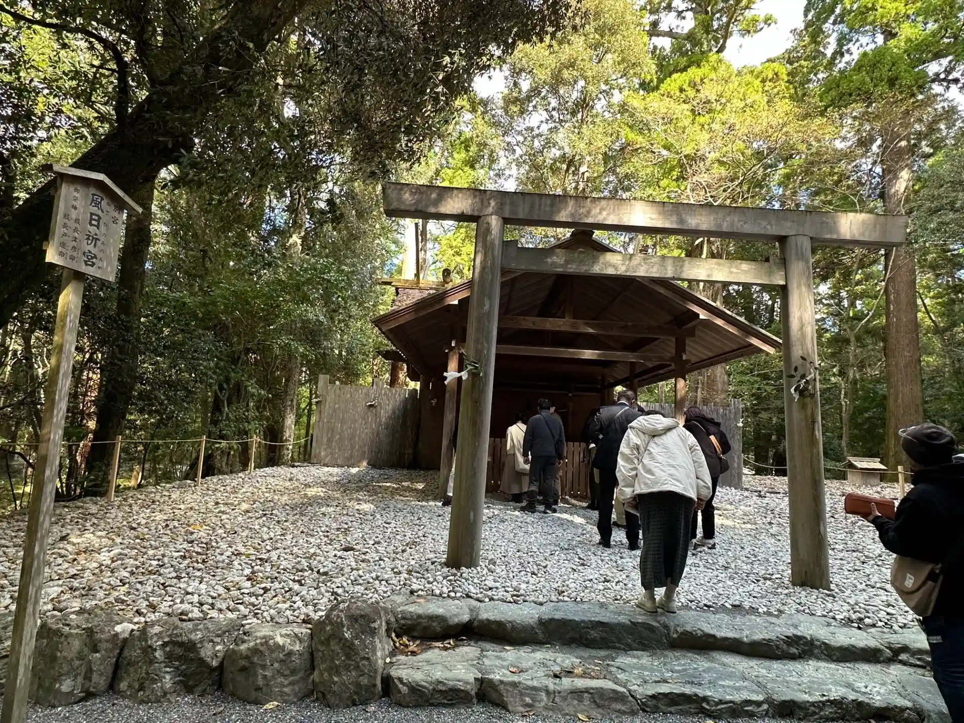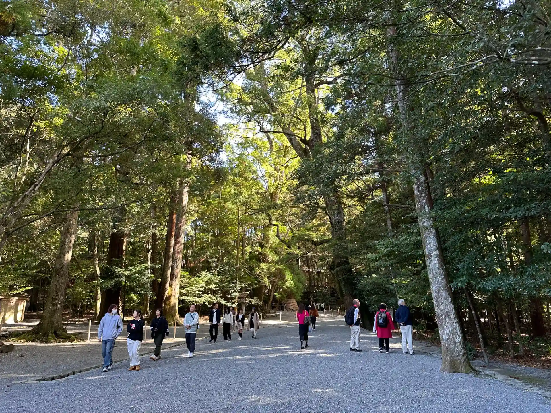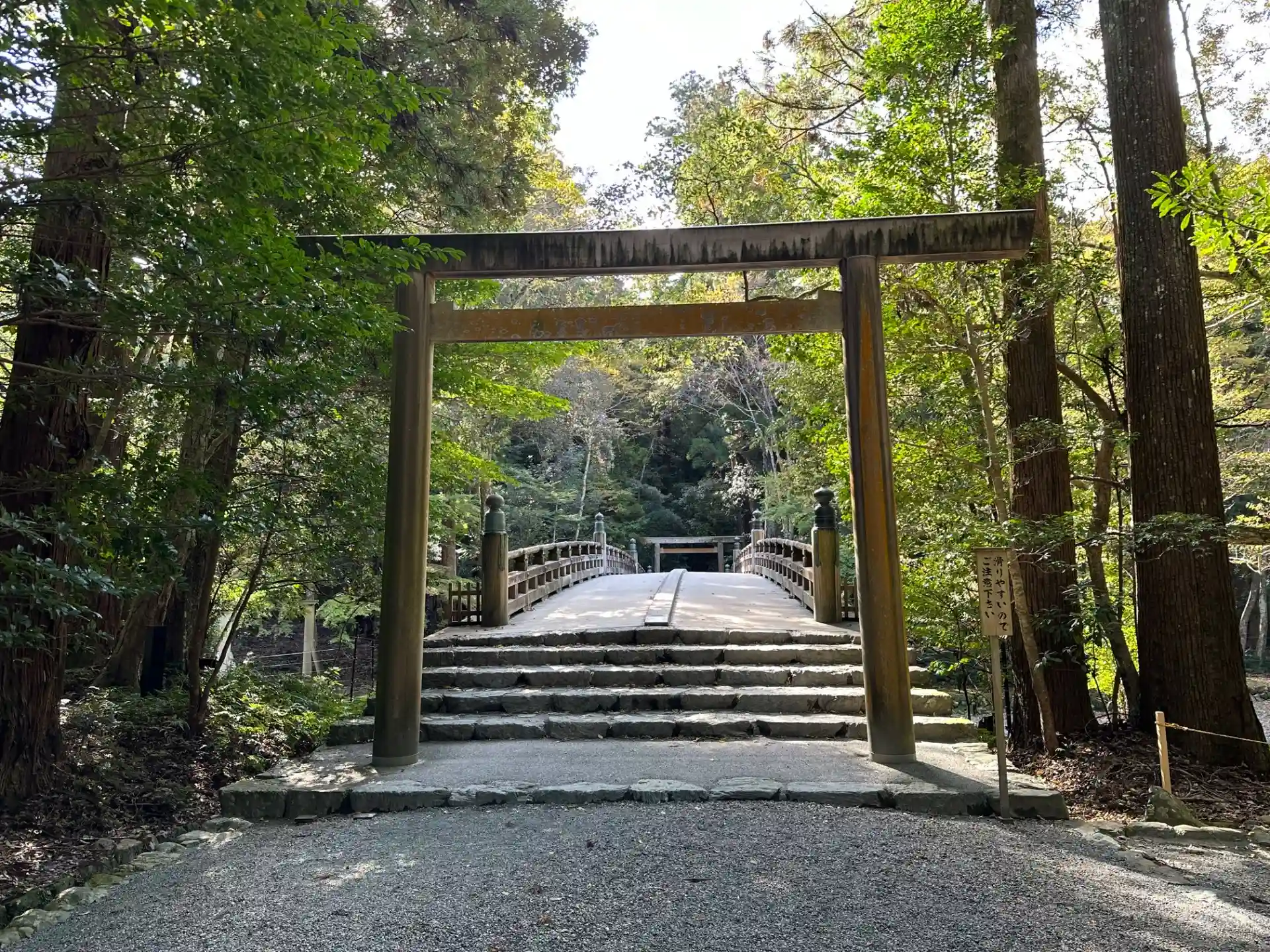 天照大御神様は橋から向かって左手奥に御鎮座されているので右側通行になっております。左側はお帰りの人が歩いてきます。