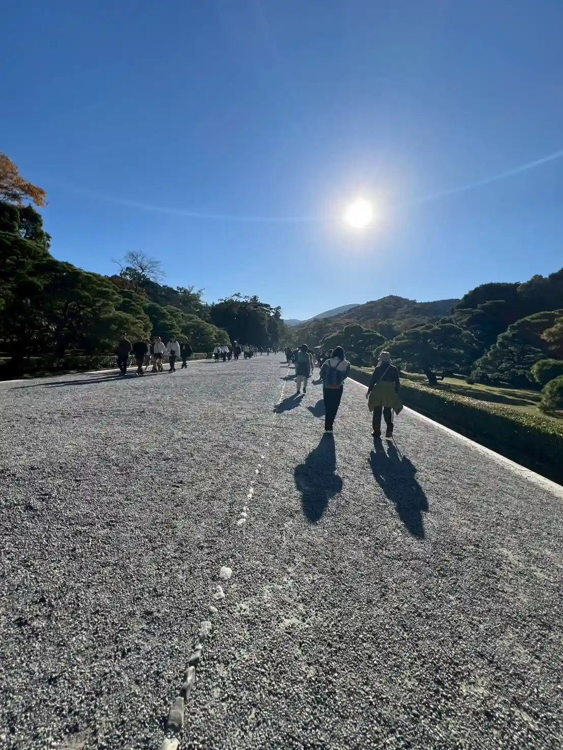橋を渡った後も、玉砂利が敷き詰められた長い参道を歩いていきます。