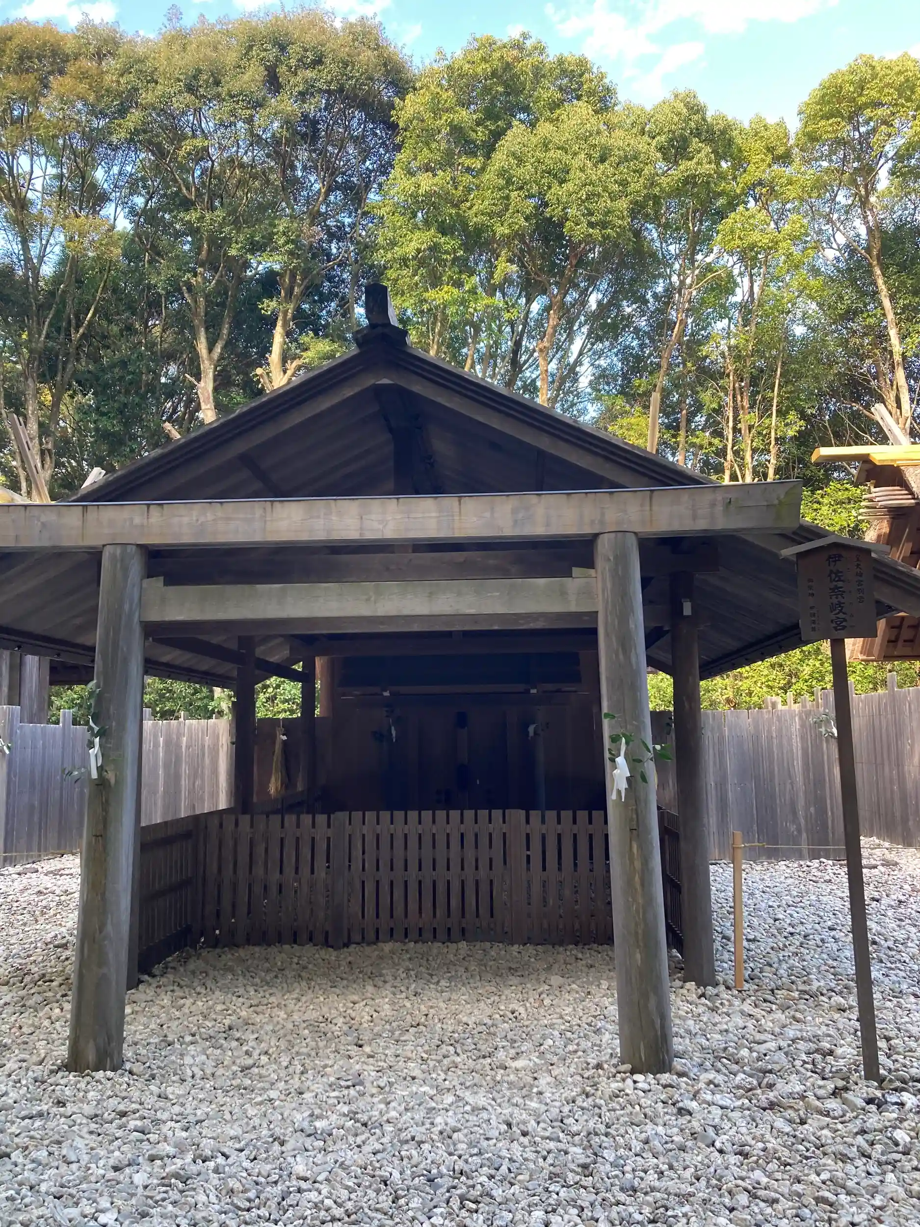 看板も鳥居も小さく、鳥居を抜けひと2人ほどの狭い参道を数10m進むと、4別宮が並んで鎮座。右から月読荒御魂宮②、月読宮①、伊佐奈岐宮③、伊佐奈弥宮④の四別宮で参拝する順番を記した木札が立っていました。