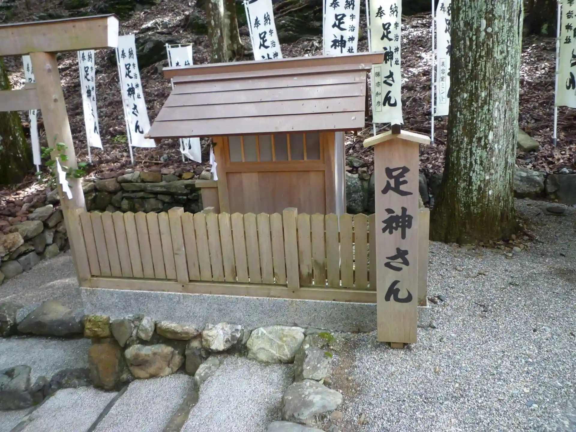 内宮駐車場のすぐ横に鎮座されています。本社の宇治神社の御利益は家内安全、農業関係の産業発展なのに何故か足神さんの方が有名みたいです。