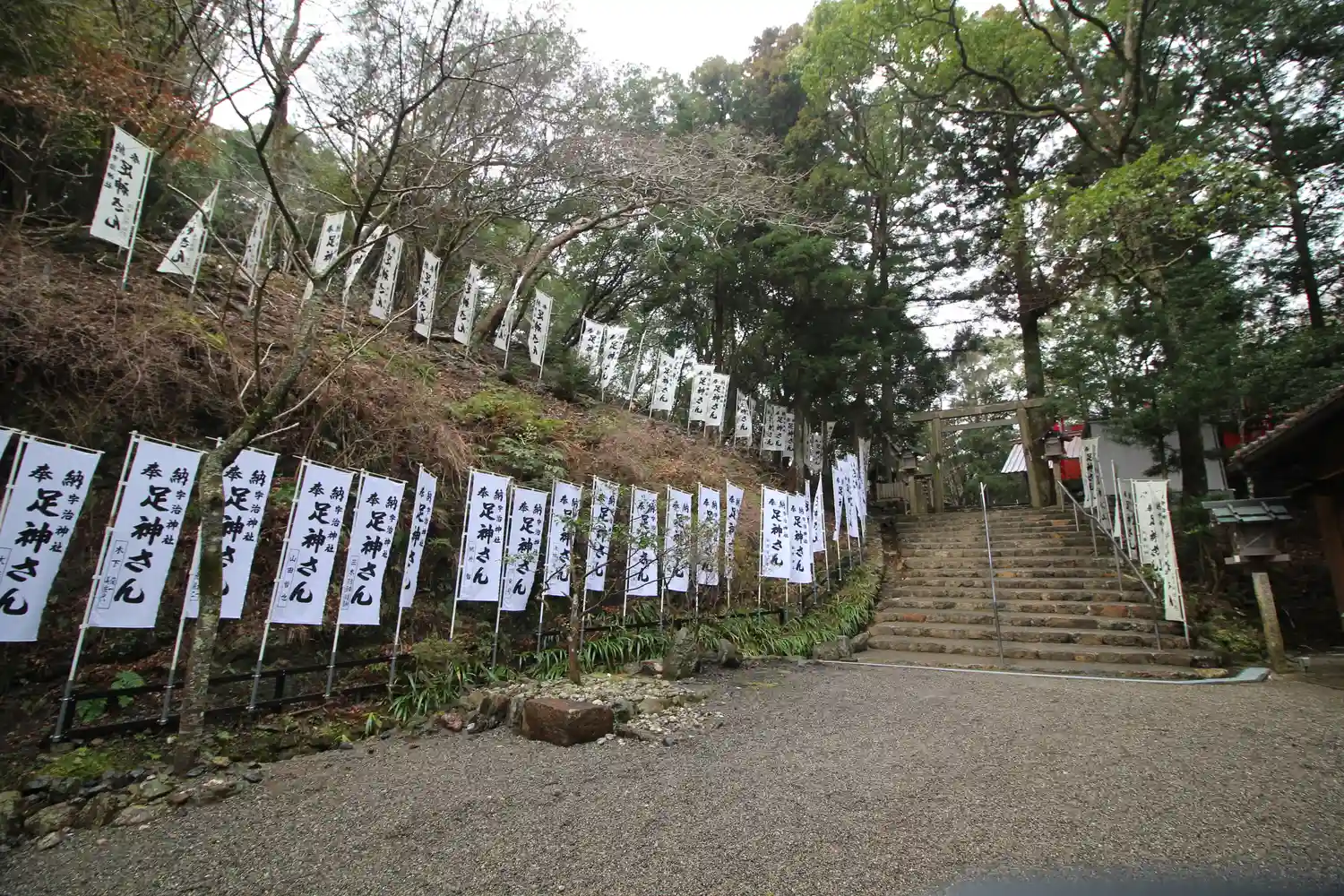 参道の幟は皆『足神さん』です