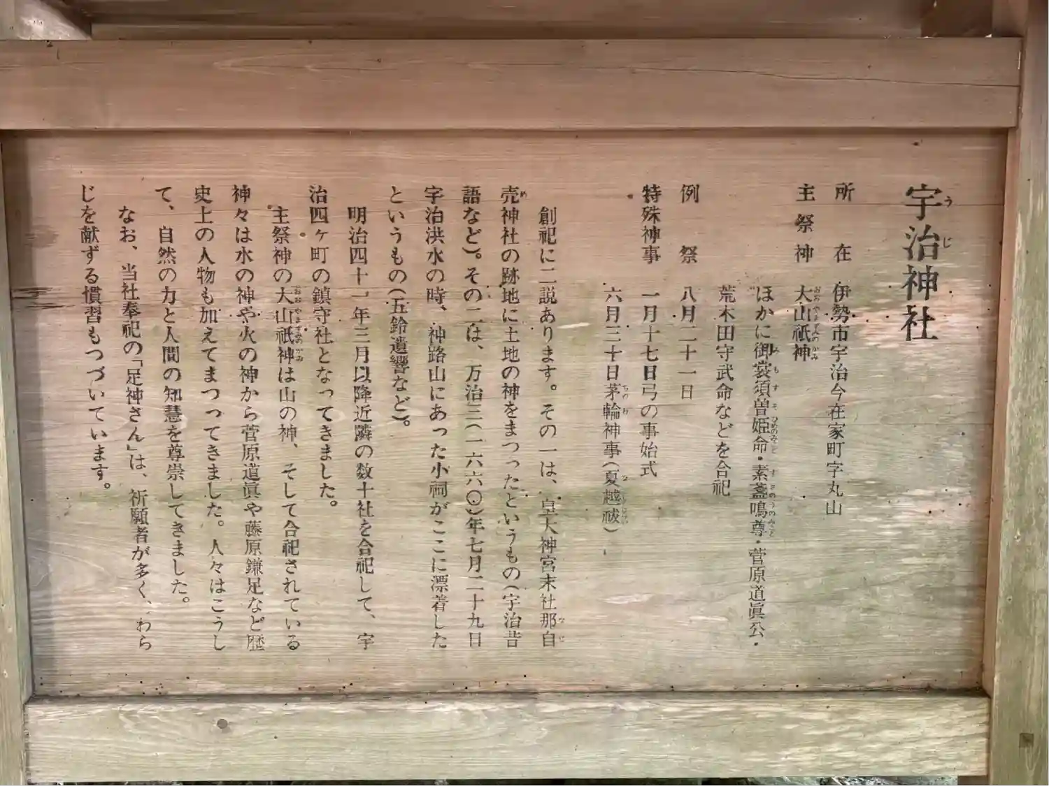 宇治神社由緒書き