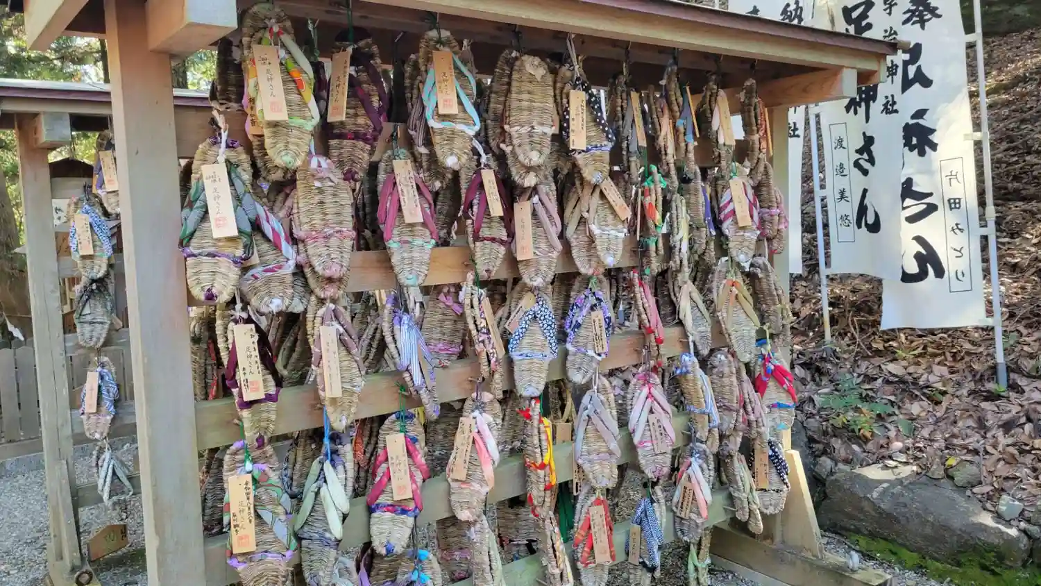 足の神様という事で陸上選手の方がお参りすることが多いようで、白いのぼりは奉納された企業の陸上部やランニングクラブの名前が記されているものもちらほら見かけました。
