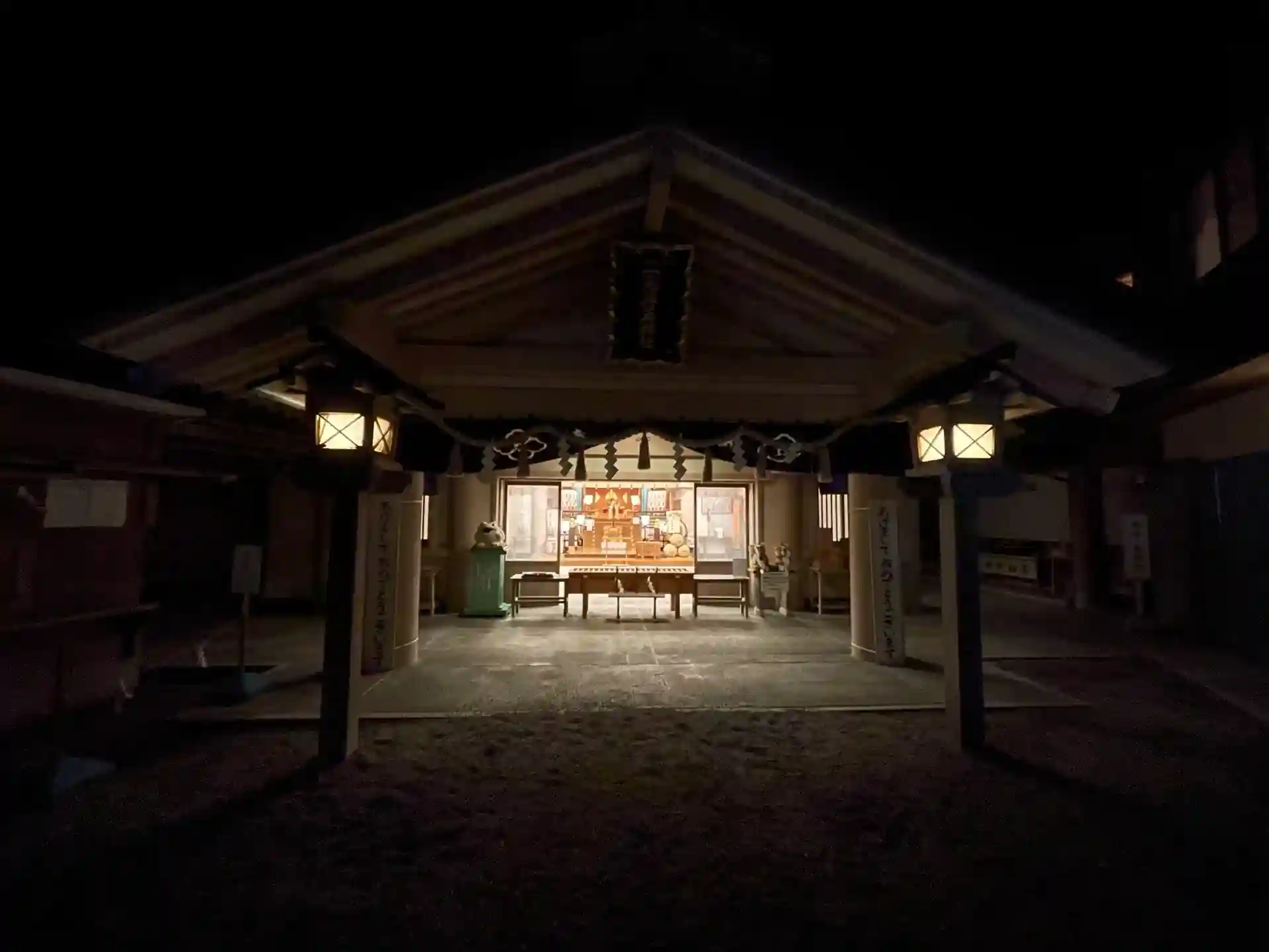 今回は、暗い内に到着しましたが、御本殿には電気が付いていましたので、そのまま参拝させて頂きました。