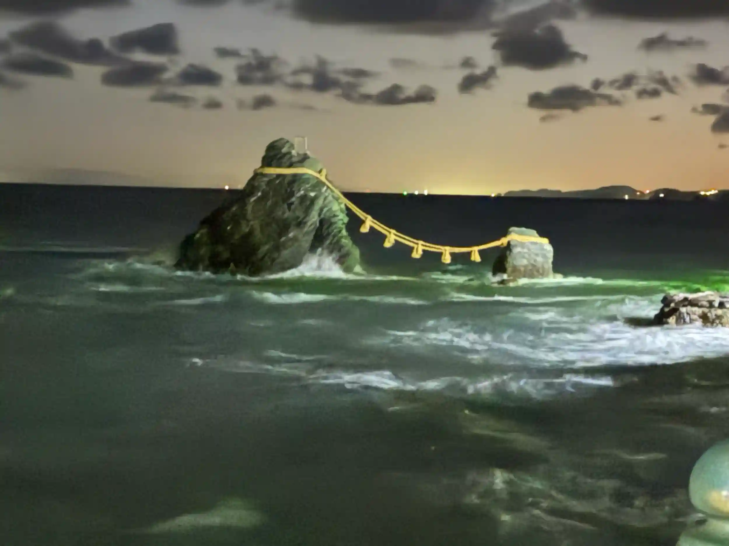 月が出ていたので、夫婦岩が見えました。