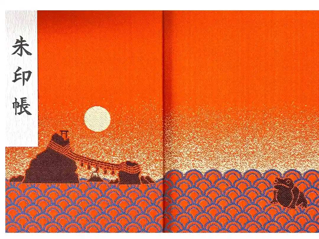 二見興玉神社の夫婦岩と満月が描がいた御朱印帳です。