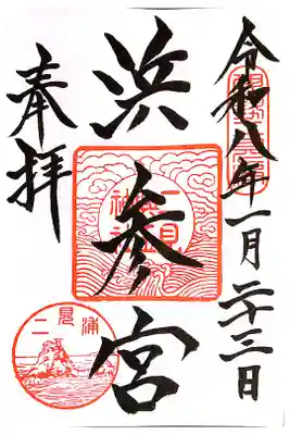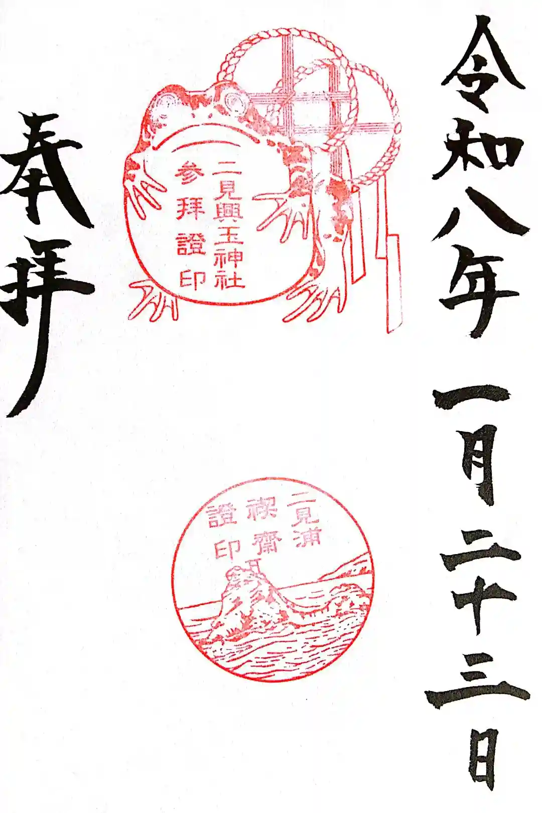 左側に「奉拝」の墨書きに「二見浦」の文字と夫婦岩の絵の印が押されています。