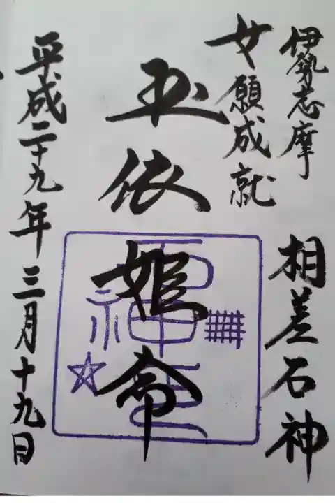 お伊勢参りの旅の最後にどうしても行きたかった石神さんへ、お参りの人はものすごく多かったのに、16時過ぎてたので、参与所は閉まっていて、翌朝早めにホテルを出発。女性の願いは必ず一つは叶えてくれる。というので、女性が多かったです。私もピンク色の紙に願いを書き、お守りを授けて頂きました。1年経たずに叶えて頂き、お礼参りに行き、お守りを奉納して来なくてはと思っています。