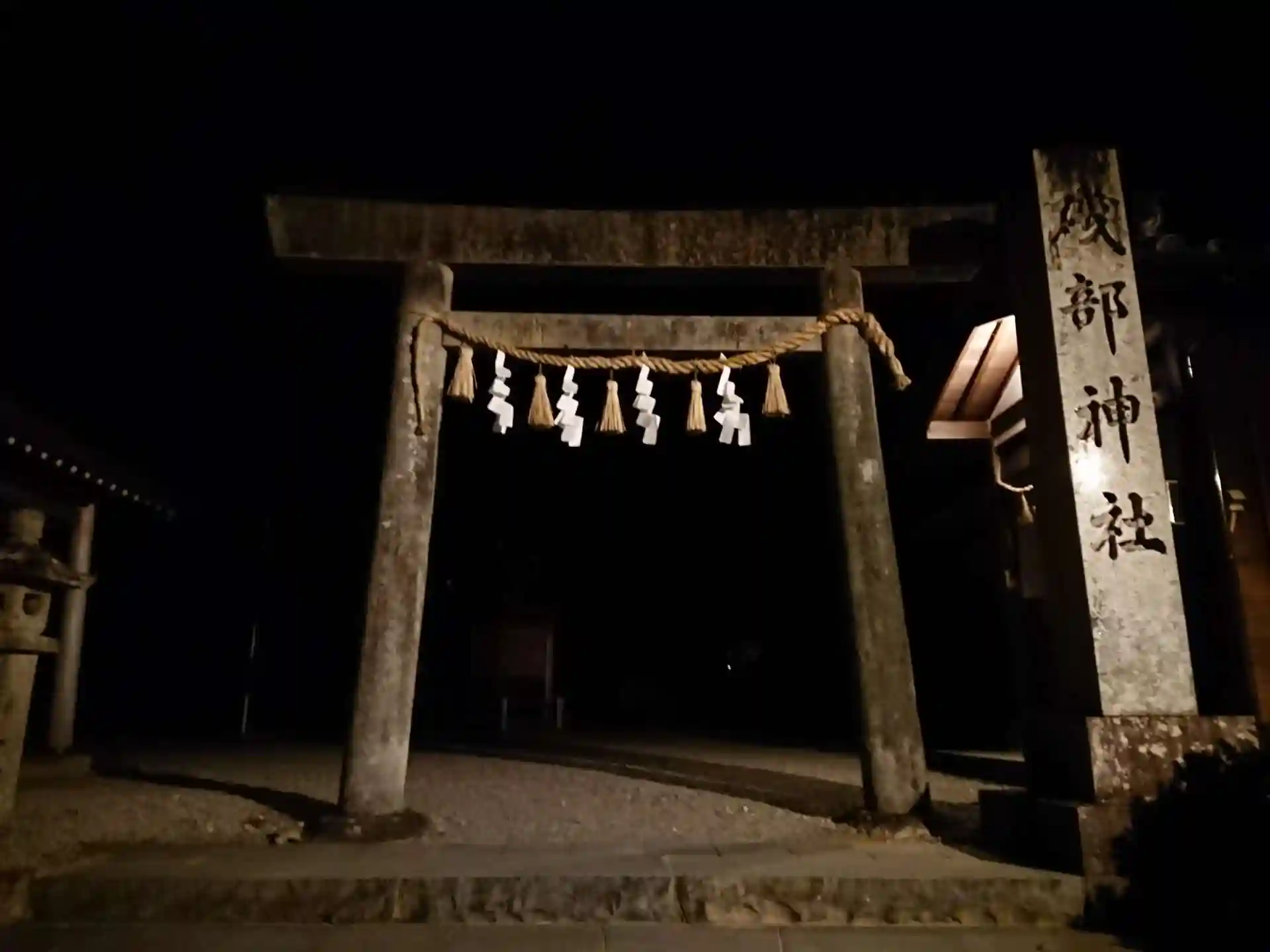 通りすがりに案内板があったので、立ち寄りました。夜だったのですが鳥居までは明かりがあります。しかしその先は真っ暗ですが、目をこらせば見えます。やはり明るい時に行かないとダメですね。