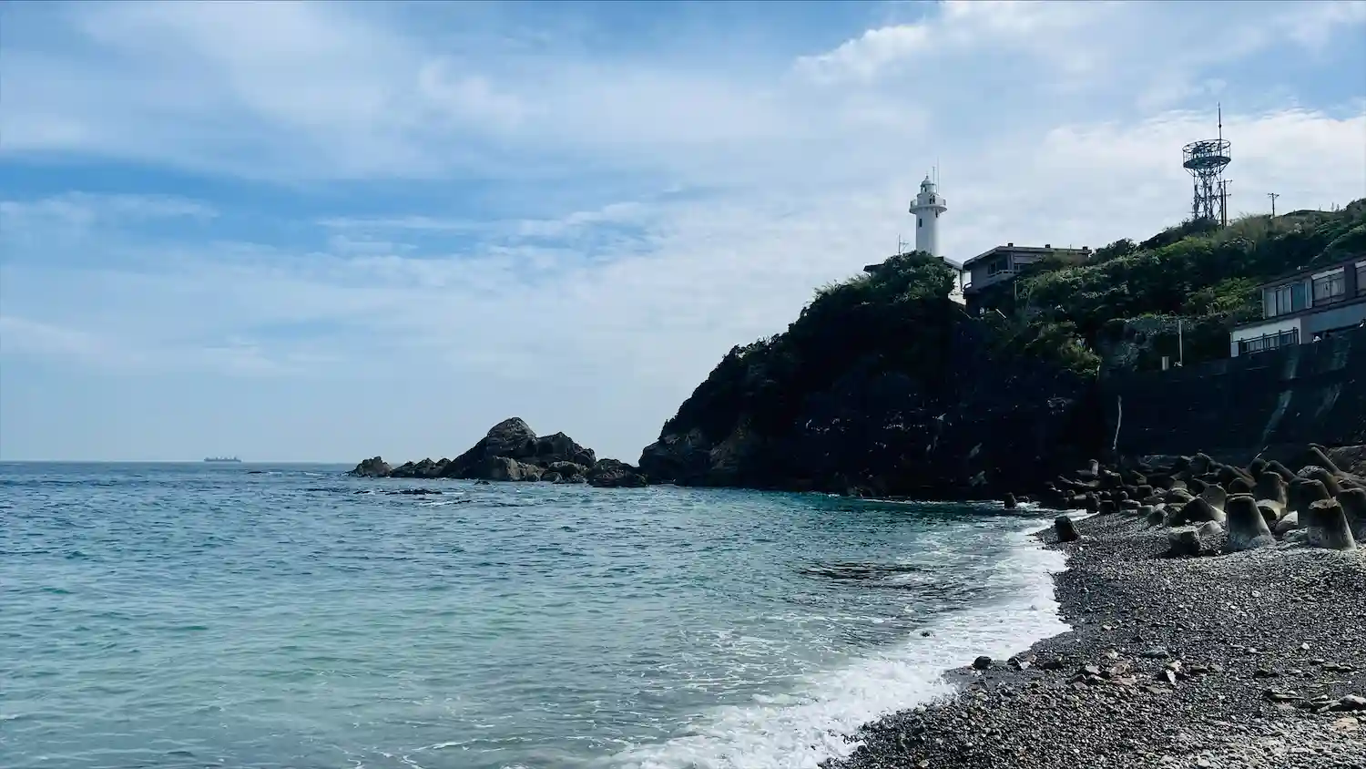 岬の中にありました。赤い屋根が綺麗です。
