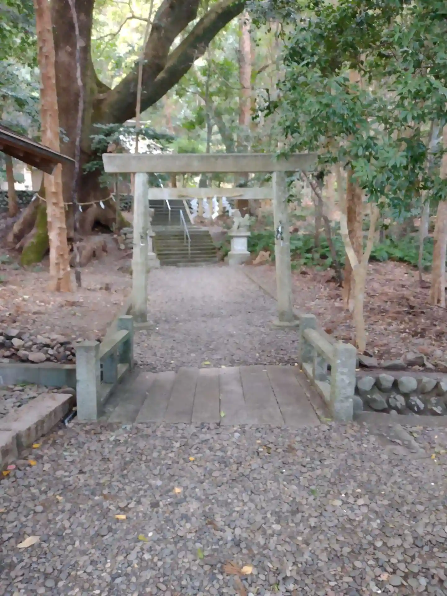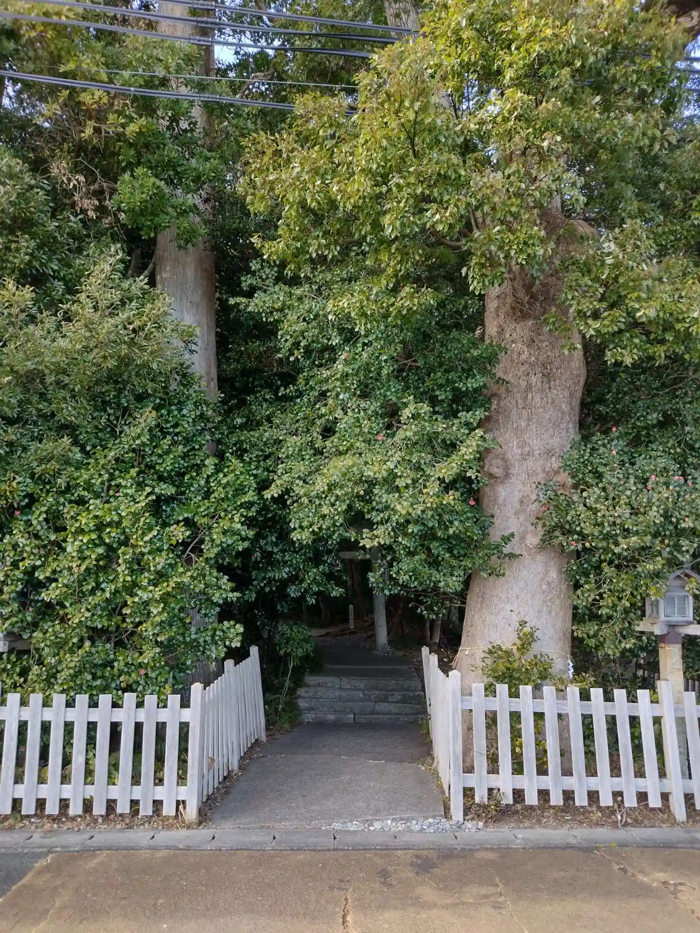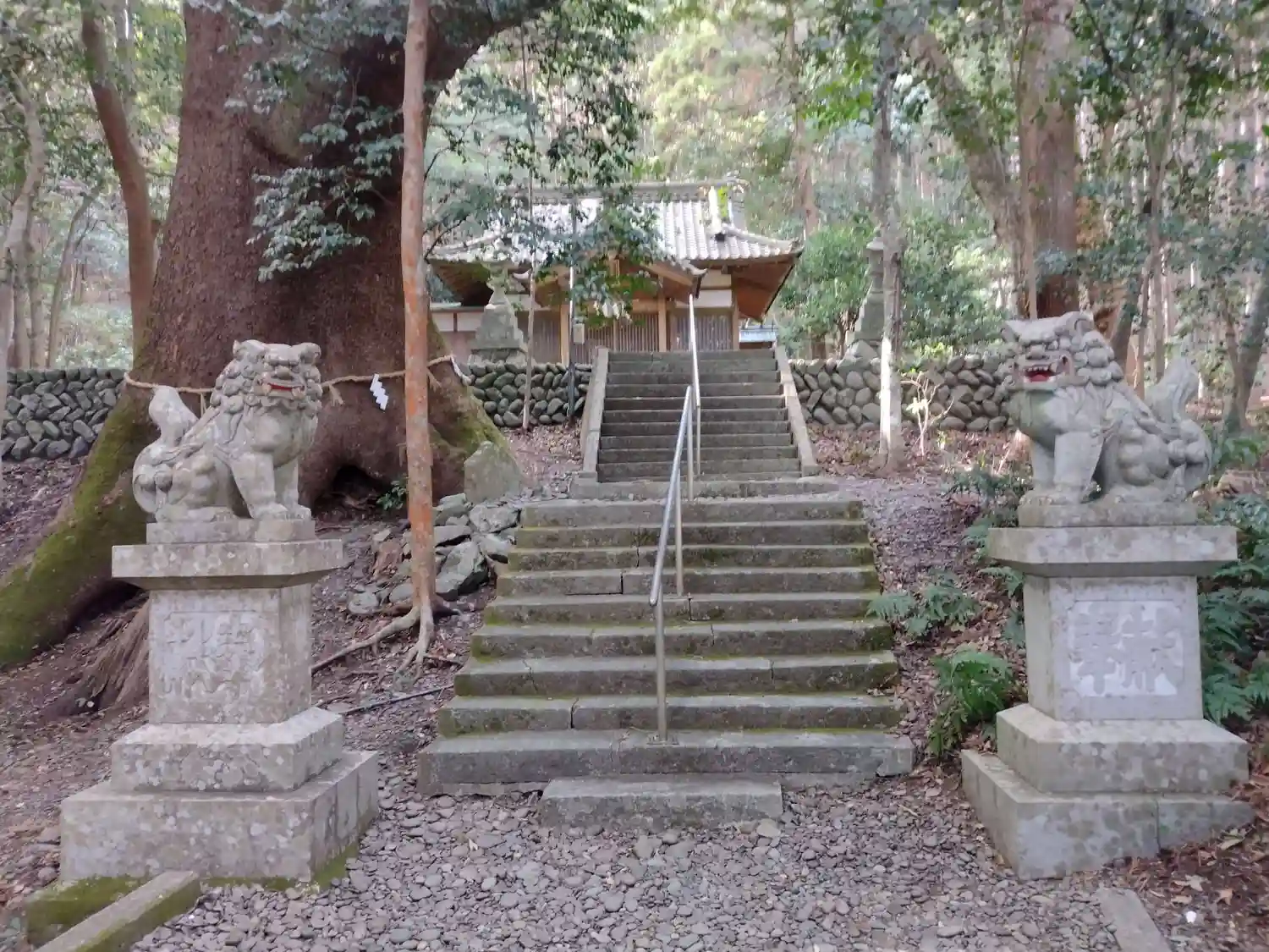 クスノキは巨木で樹齢千年ともいわれ、石段脇、境内のほぼ中央に立って神社全体を見守っているようにも見えます