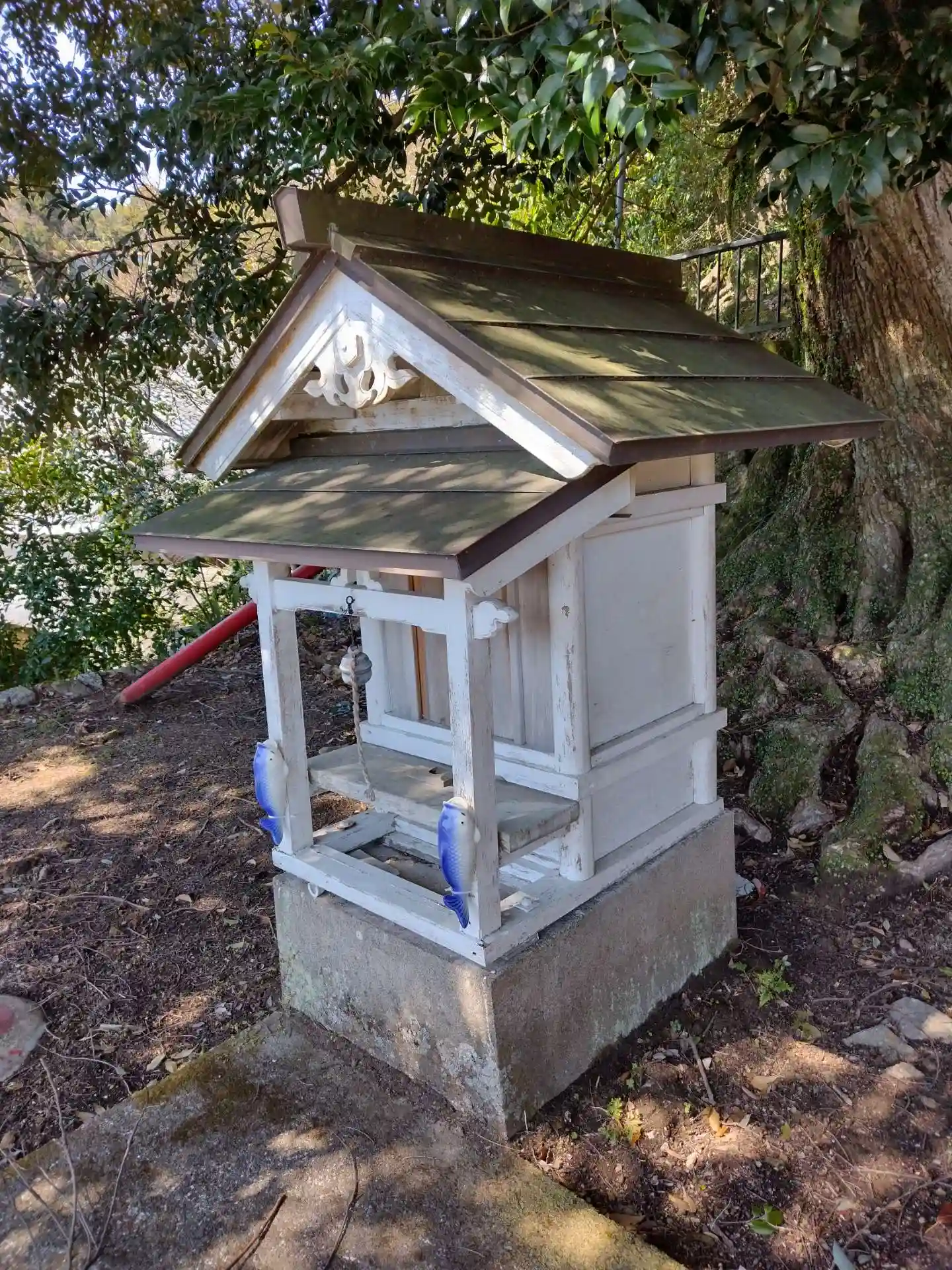 クスノキの大木を従えて、九鬼隆信が集落を見守っているようです。