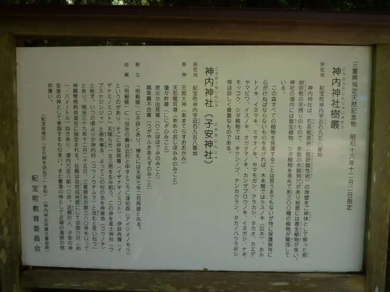 | ご由緒 | 「明細書」には「当社の義は近石と申すところ逢初森(アイソメモリ)のがあり、そこに伊弉諾尊(イザナギノミコト)伊弉冉尊(イザナミノミコト)天降らせ一女三男をうみ給う、この神を産土神社(ウブスナジンジャ)と崇め奉る。よってこの村の名を神皇地(コウノチ)と称す。いつの頃よりか神内村(コウノウチムラ)と改むと言い伝う」とあり。 |