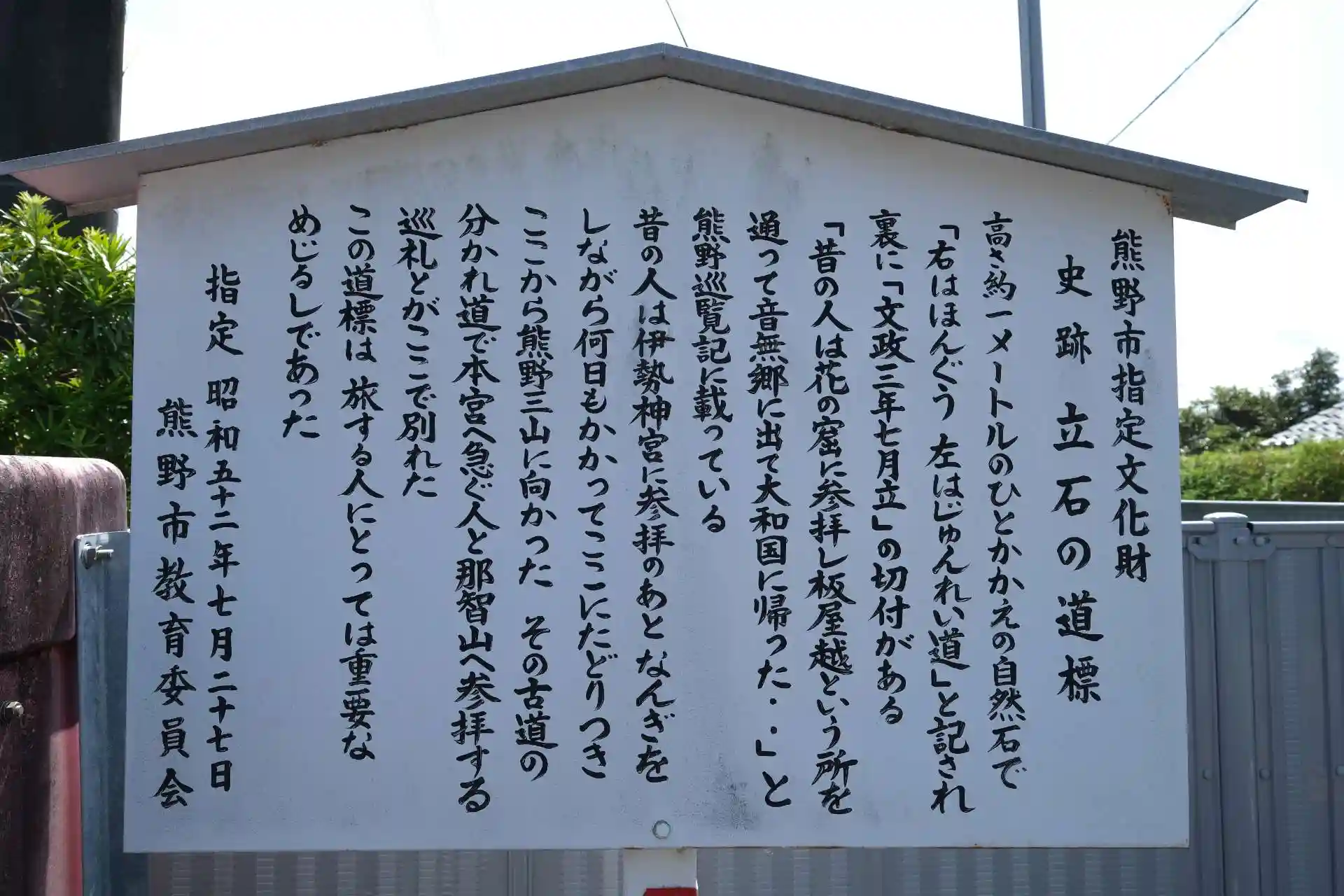 看板の下にある道標石の文字は長年の風雨のためかほとんど読めなくなっていました。