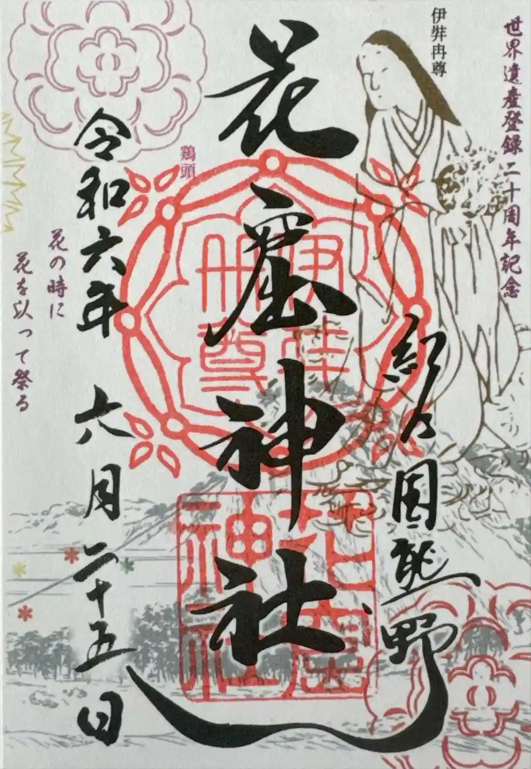過去のお参り。人生初の御朱印と御朱印帳を手に入れた場地です。旅の思い出にと買って御朱印を頂いた花の…