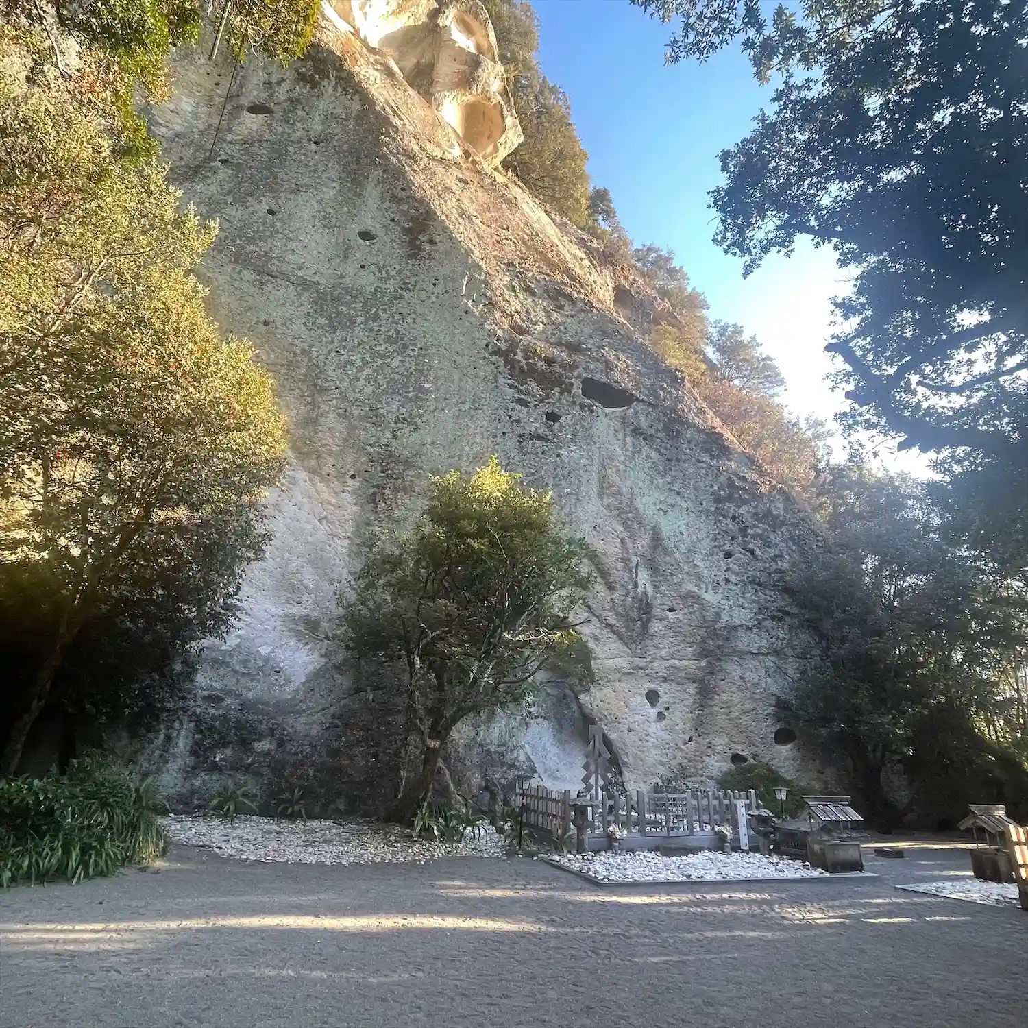 山が削られたような感じのところに参拝する場所が…