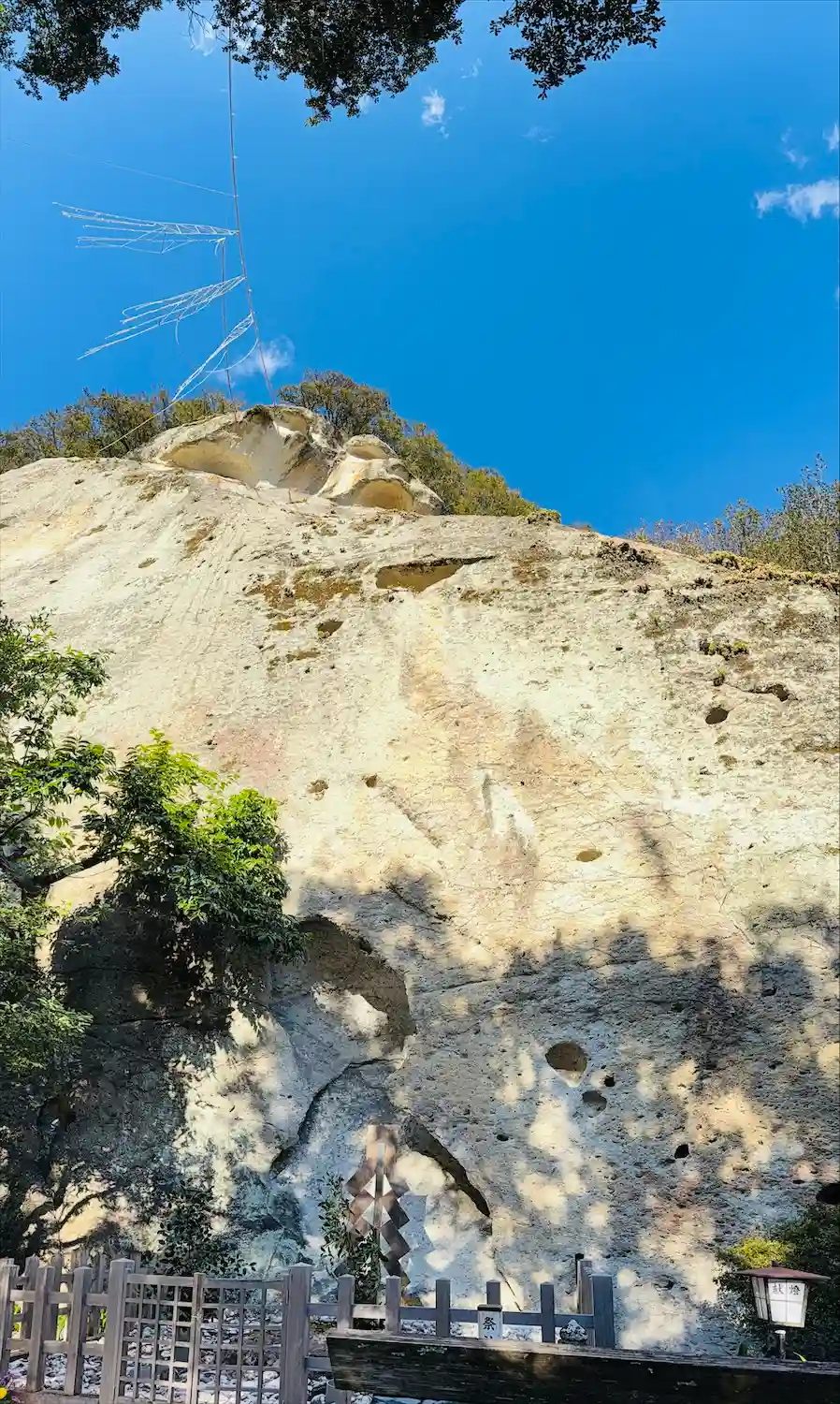 岩のご神体は、約45mの高さ。