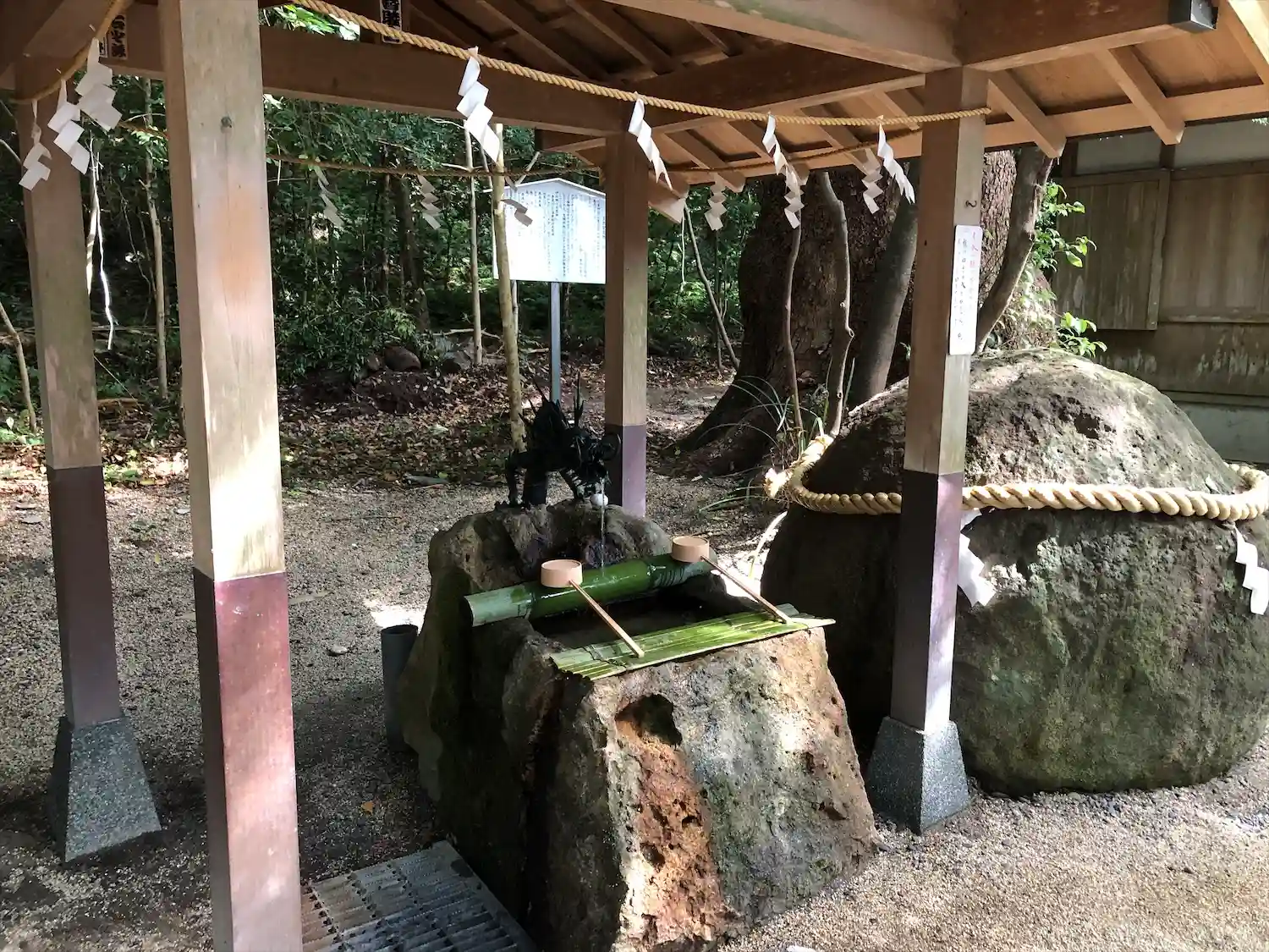 あとはゆっくりお参りできます。手水舎です。上手に竹を切って龍に見立てています。