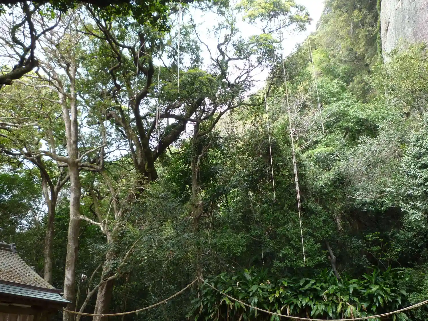 御縄掛け神事で張られた縄が見えます