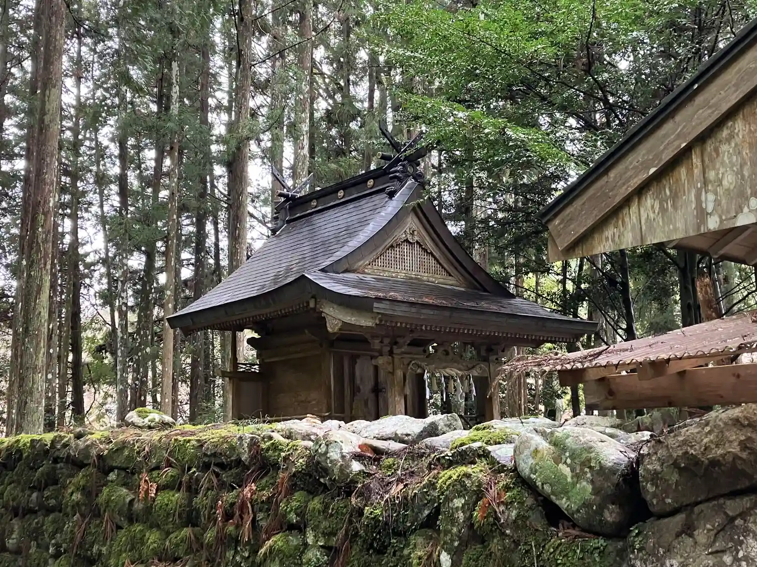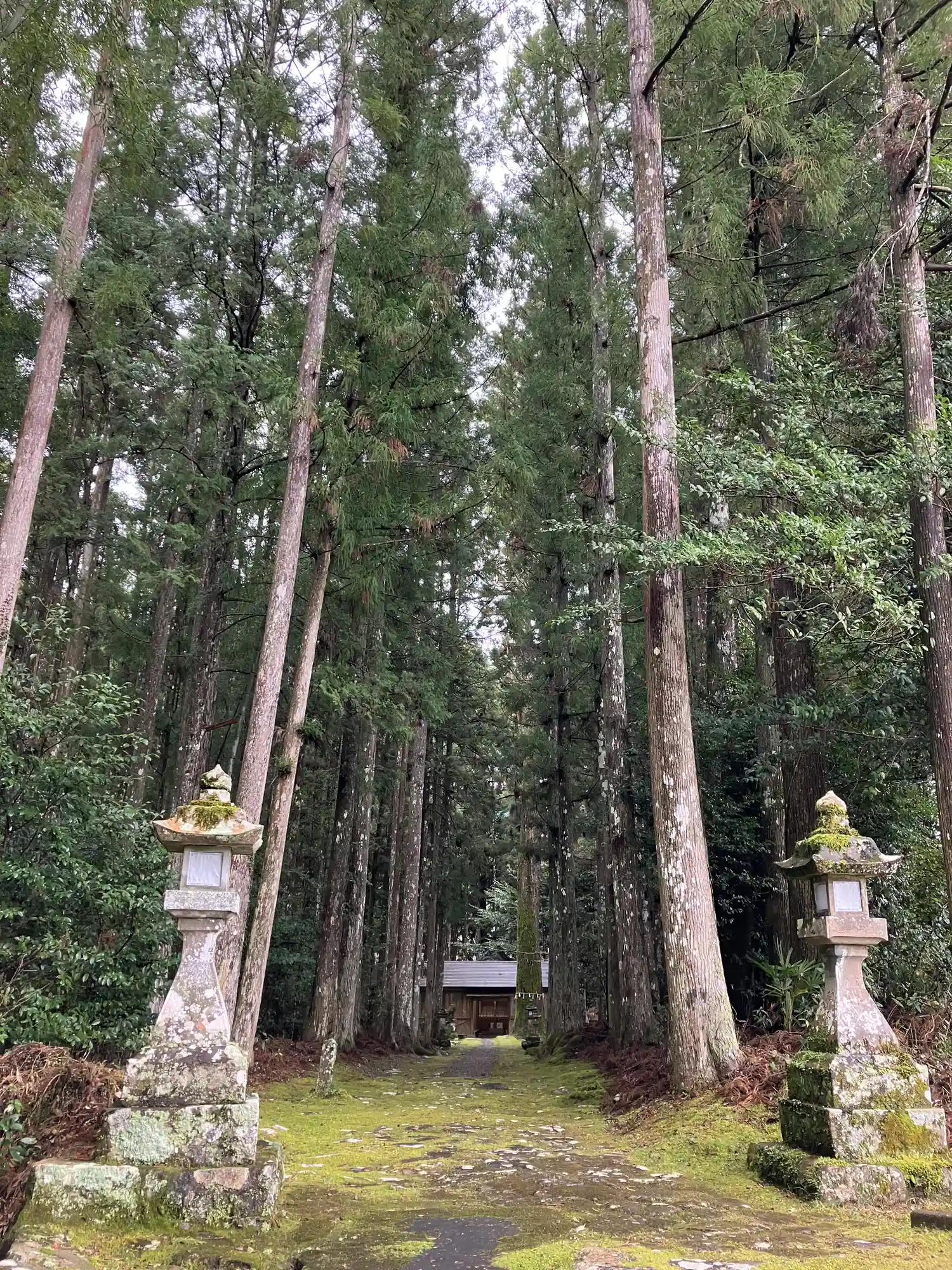鳥居をくぐって拝殿まで向かう参道が、苔むしていました。雰囲気があって良しとする向きもありますが、参拝する人も滅多にいないことの裏返しなので、私としてはあまり良いこととは思いません。