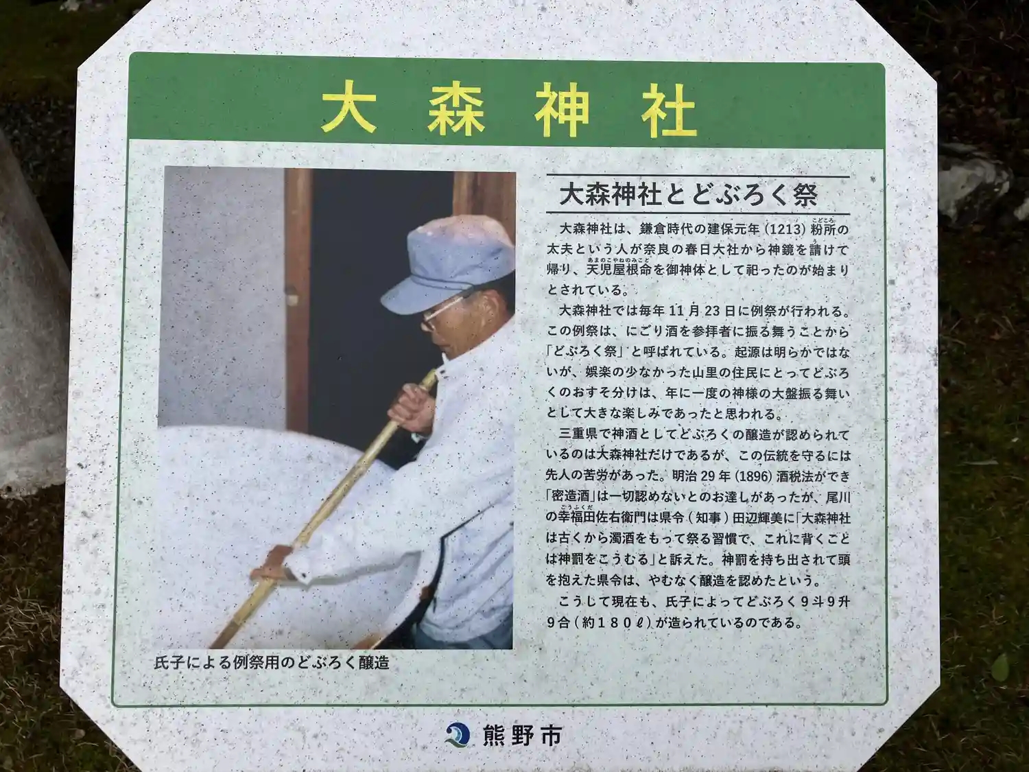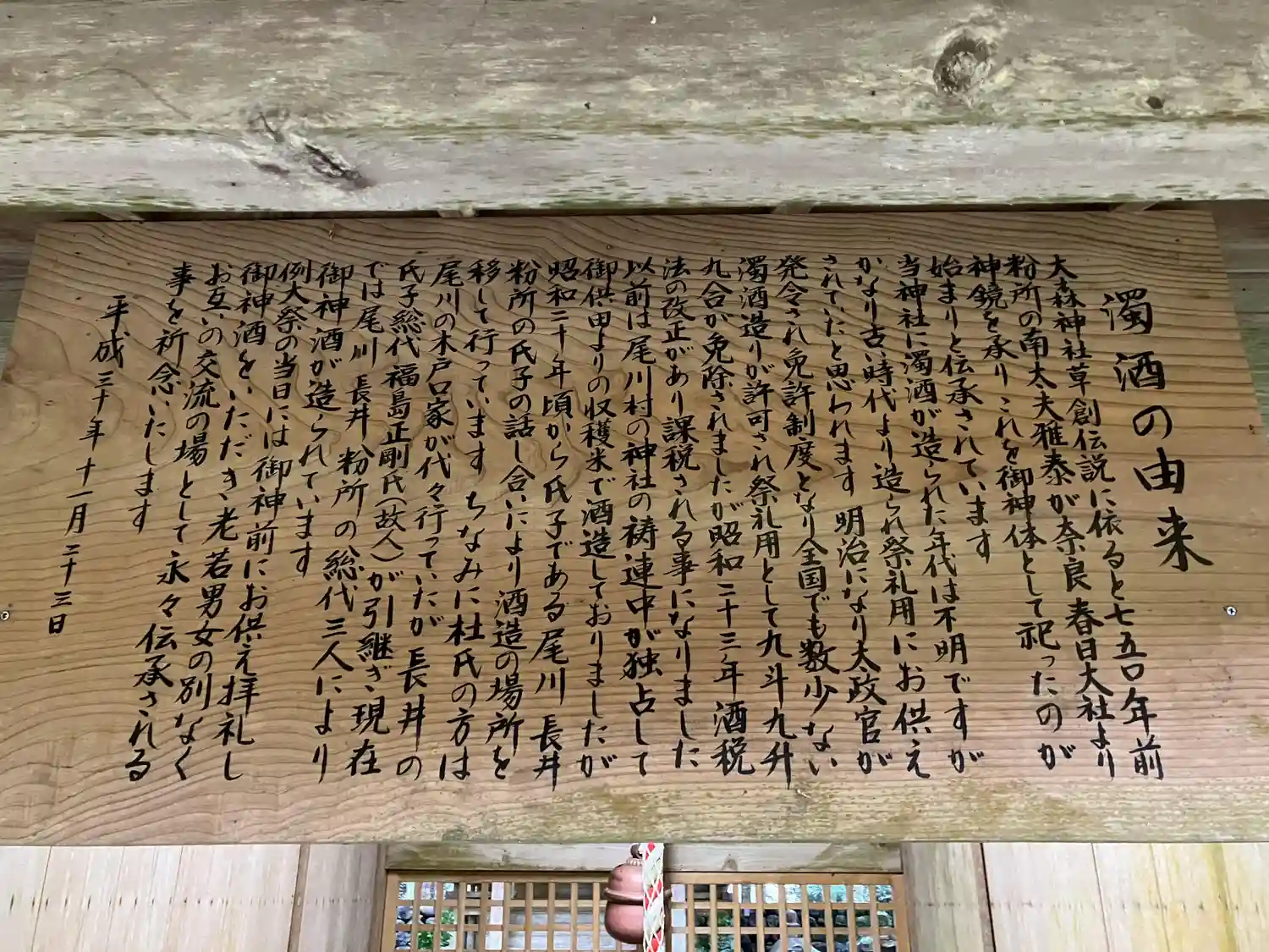 この神社では祭礼用にどぶろくが造られているようですが、明治になって酒税法ができてからは一切認めないというお達しがあった時に、「古くからの習慣で、これに背くことは神罰をこうむる」と県令に訴えたところ止む無く醸造が認められたという経緯があります。