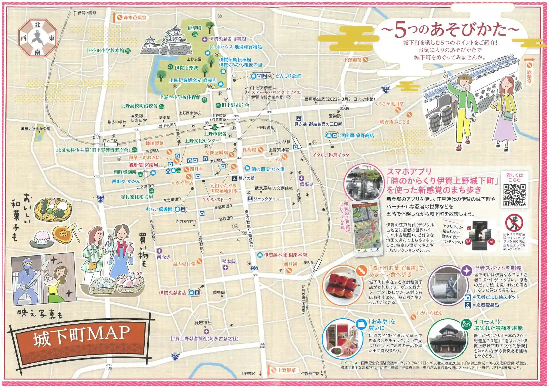 スマホアプリ「時のからくり」伊賀上野城下復元地図の公式ポップ。ぜひダウンロードしてお楽しみ下さい。