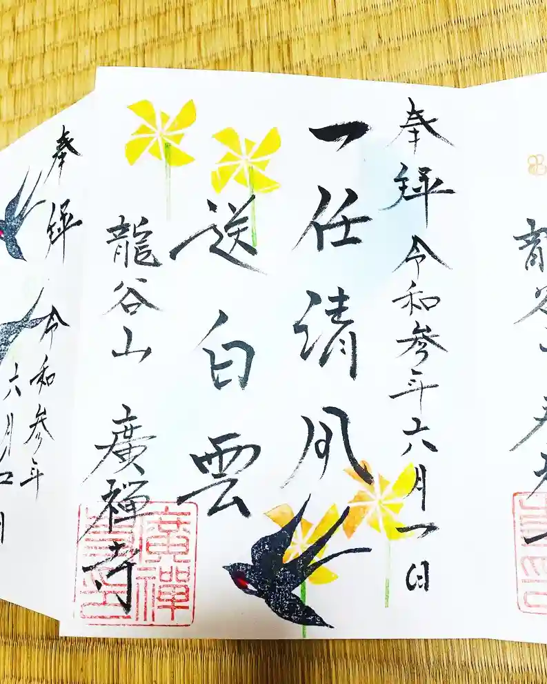 広禅寺では、住職はじめ、お坊さんが1枚1枚手書きで書いております。