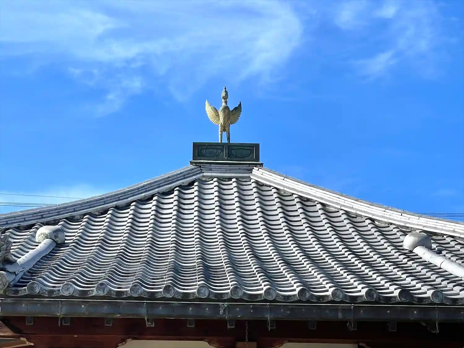 屋根の上に鳳凰らしき鳥が飾られています。