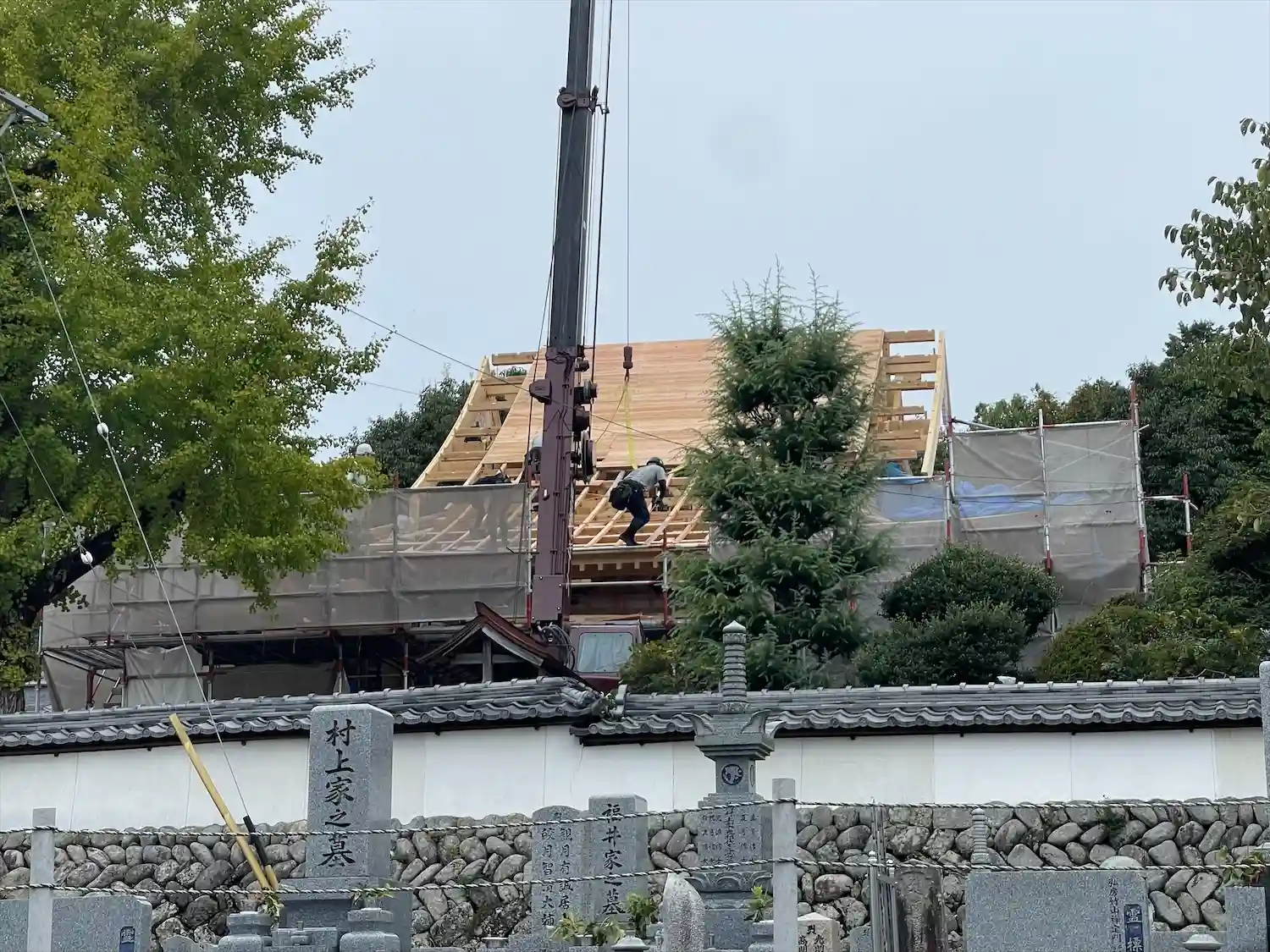 とりあえず、本堂の工事の無事も兼ねて、建て替え中の本堂に向かい手を合わせました。
