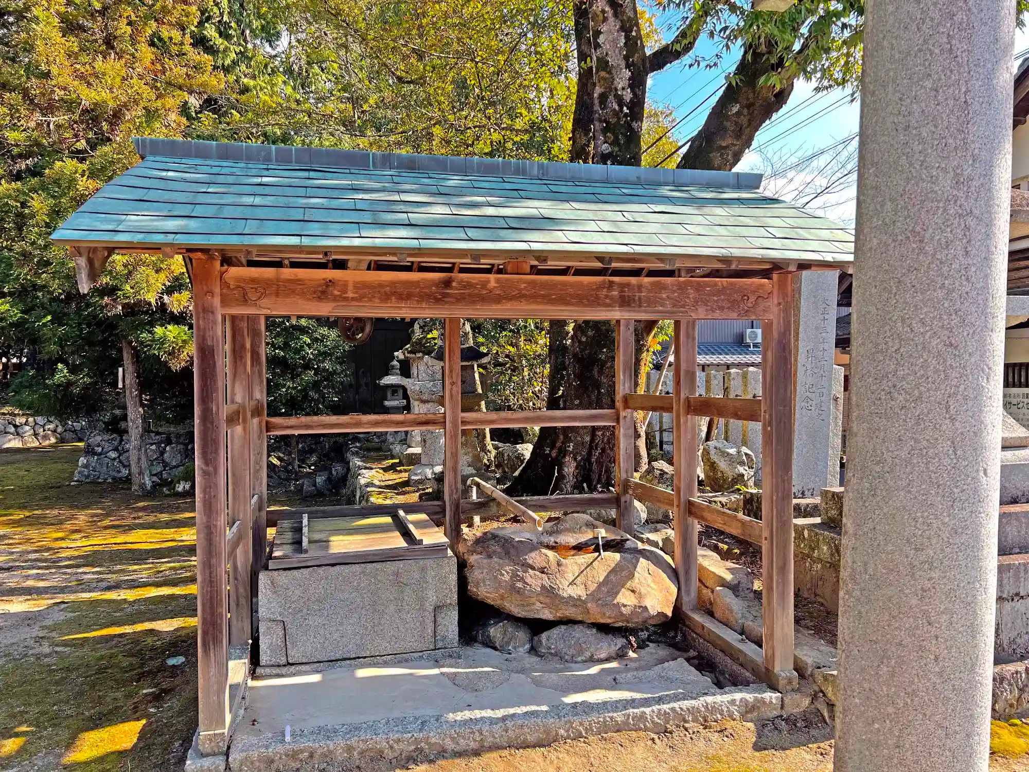 鳥居をくぐってすぐ右側にある<手水舎>。