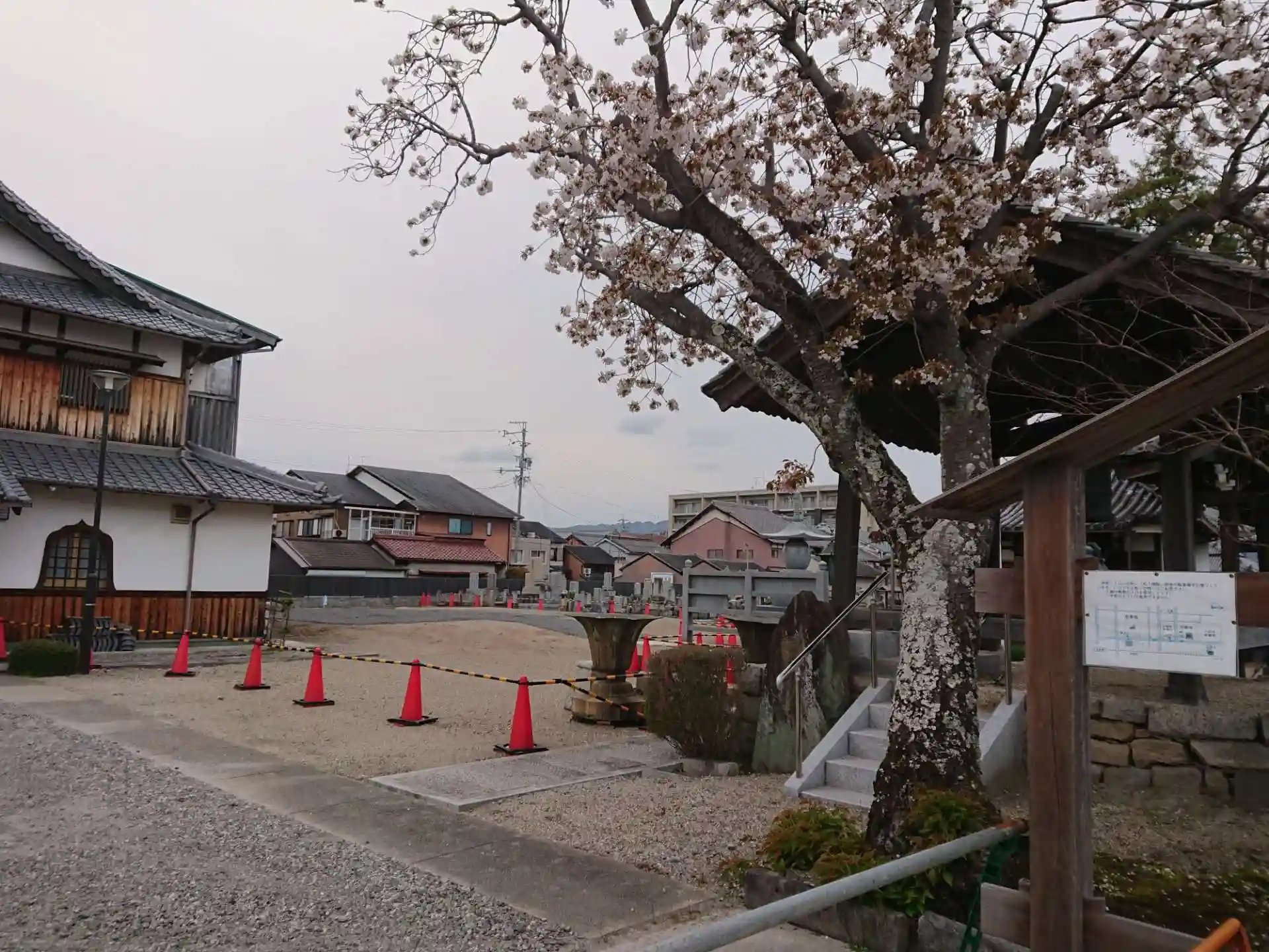 寺が密集した地域です。訪れた時は門が閉じていました。駐車場から境内を見えますが、本堂らしきものがありません。なぜでしょう?