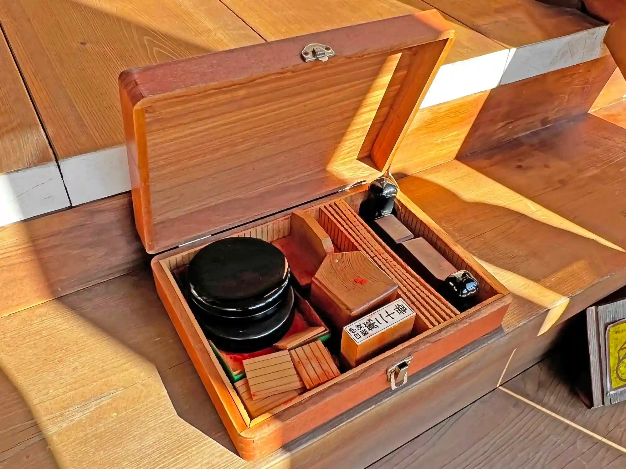 本堂正面には、きれいに管理されたセルフ御朱印セットが置かれている。