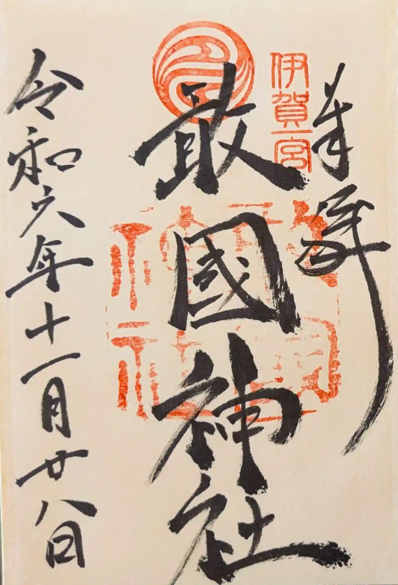 御朱印をいただきました。「伊賀一の宮」の朱印が誇らしい。