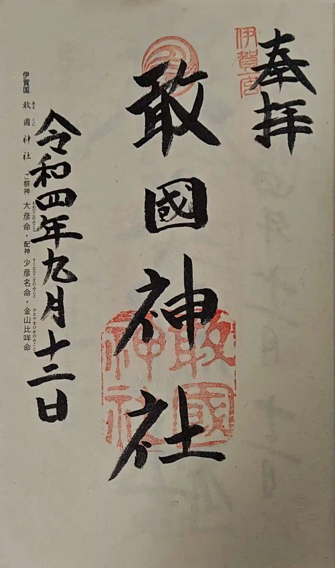伊賀国一宮 御祭神 大彦命 配神 少彦名命 金山比咩命