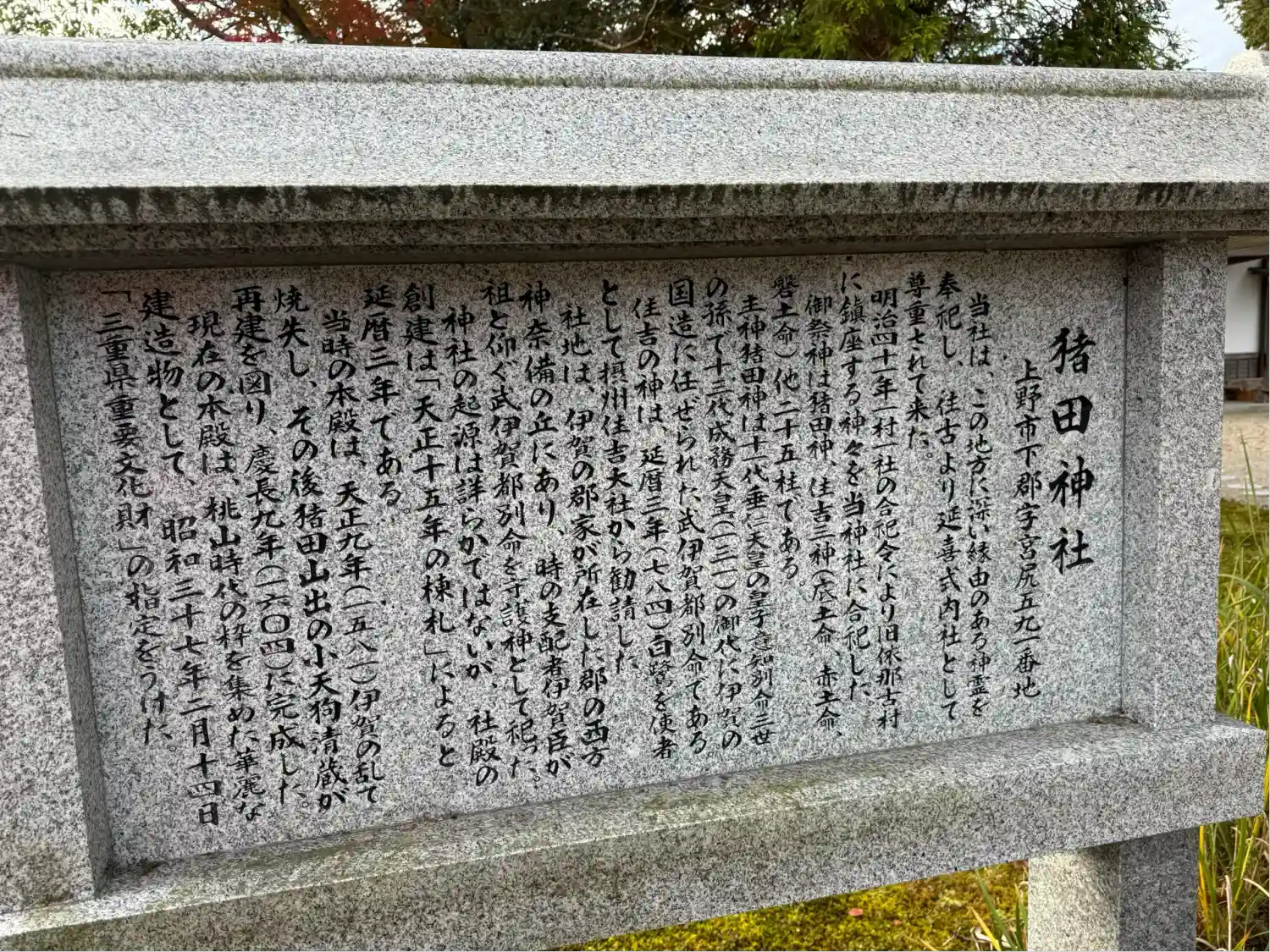 参拝させて頂きました。写真見ると雲がいいです。主祭神は猪田神、別名 武伊賀津別命とのことで、あまり…