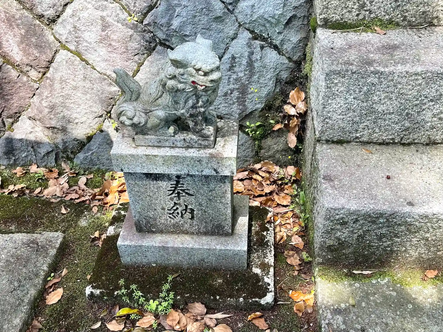 石段の横の小さな狛犬が可愛いです。