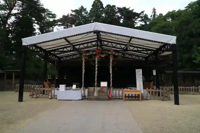 9/15,16,17に行われる御鎮座411年記念祭に伴い、御神前に一番ちかいこの三之鳥居は罪・穢れを防ぐために縄を張っているそうです。