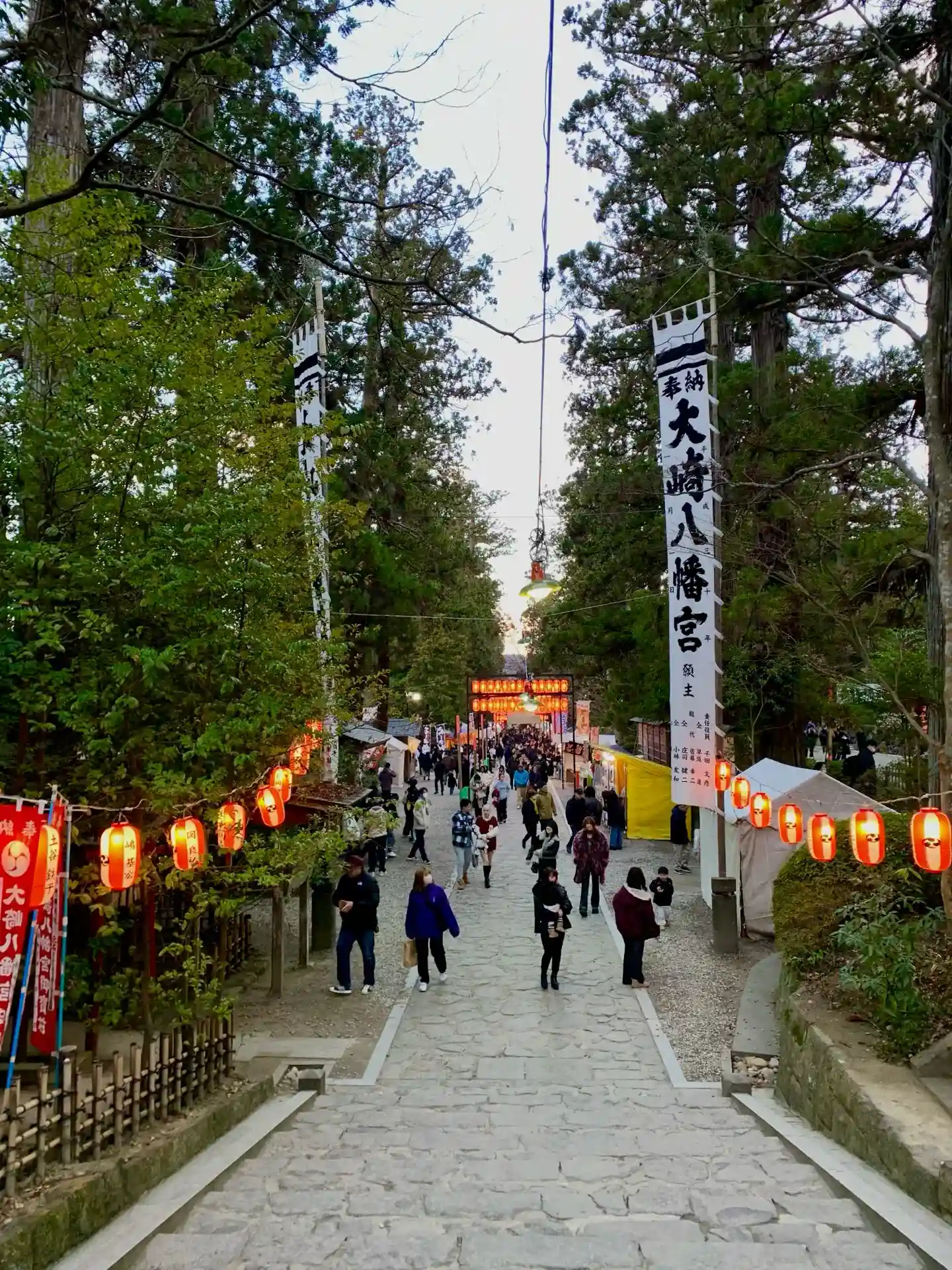 夕暮れが近づき提灯🏮に火が灯されると