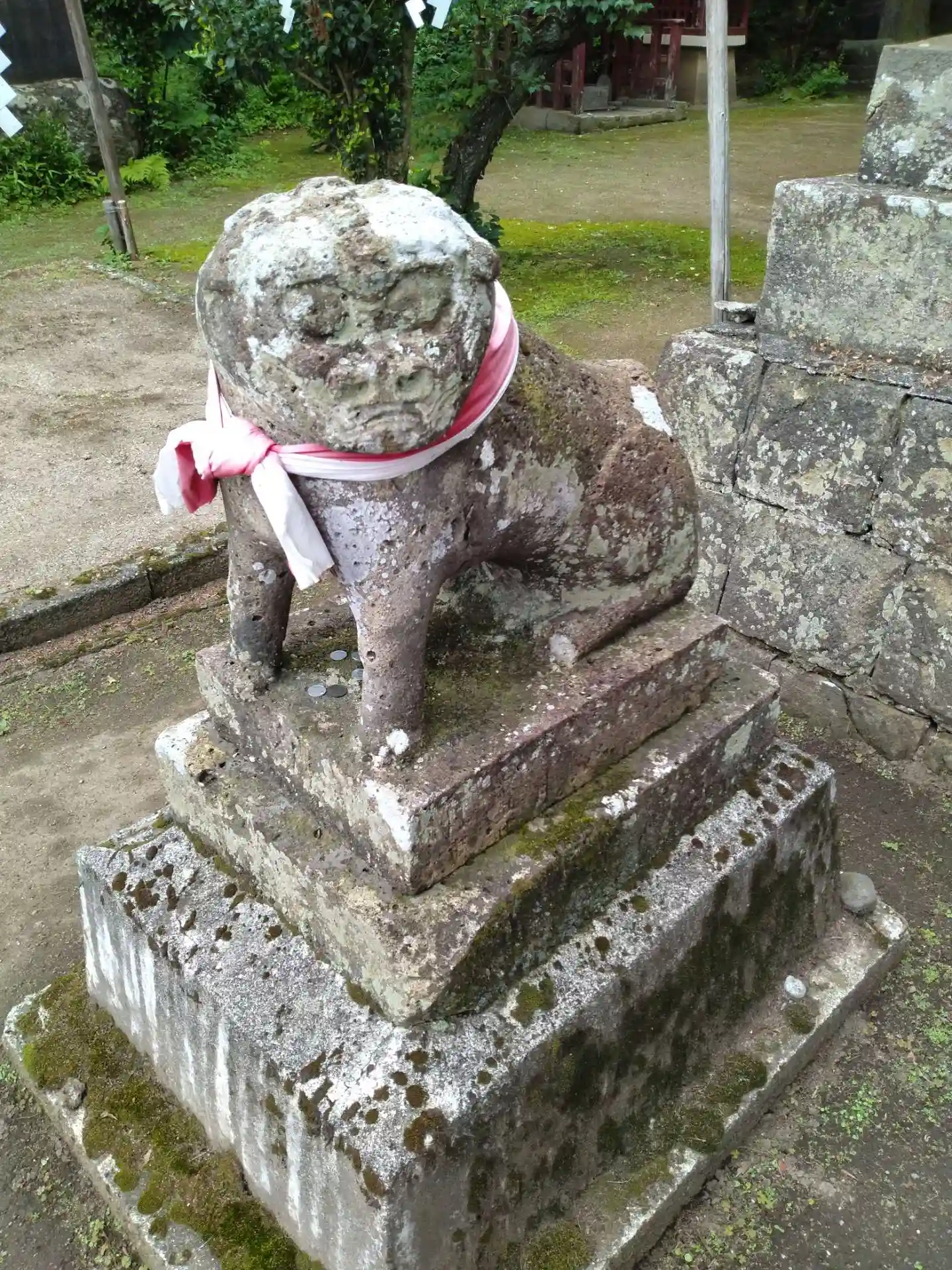 川内天神社 境内に鎮座する(阿形の狛犬さん)の様子です