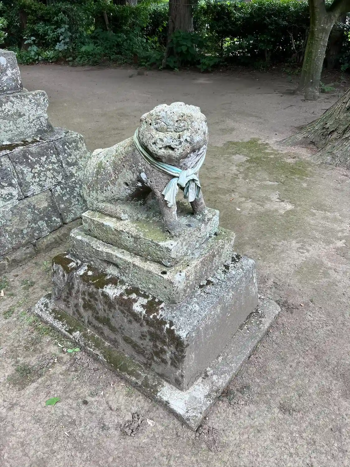 川内天神社 境内に鎮座する(吽形の狛犬さん)の様子です