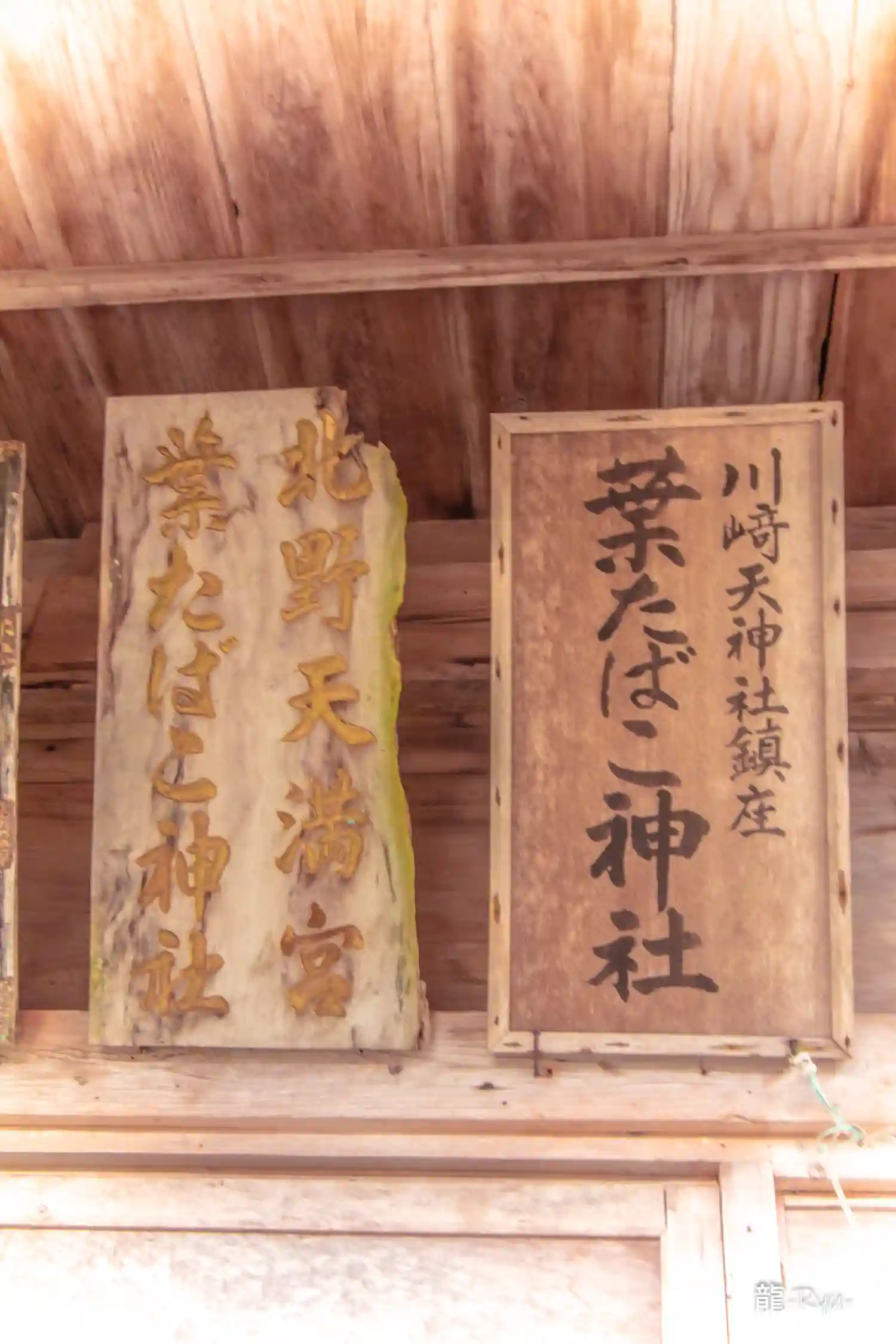 川内天神社 拝殿前上部に掲げてある(珍しい葉たばこ神社)の扁額の様子です