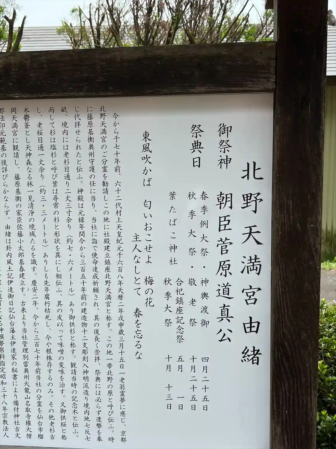 由緒正しき北野天満宮からの分霊神社